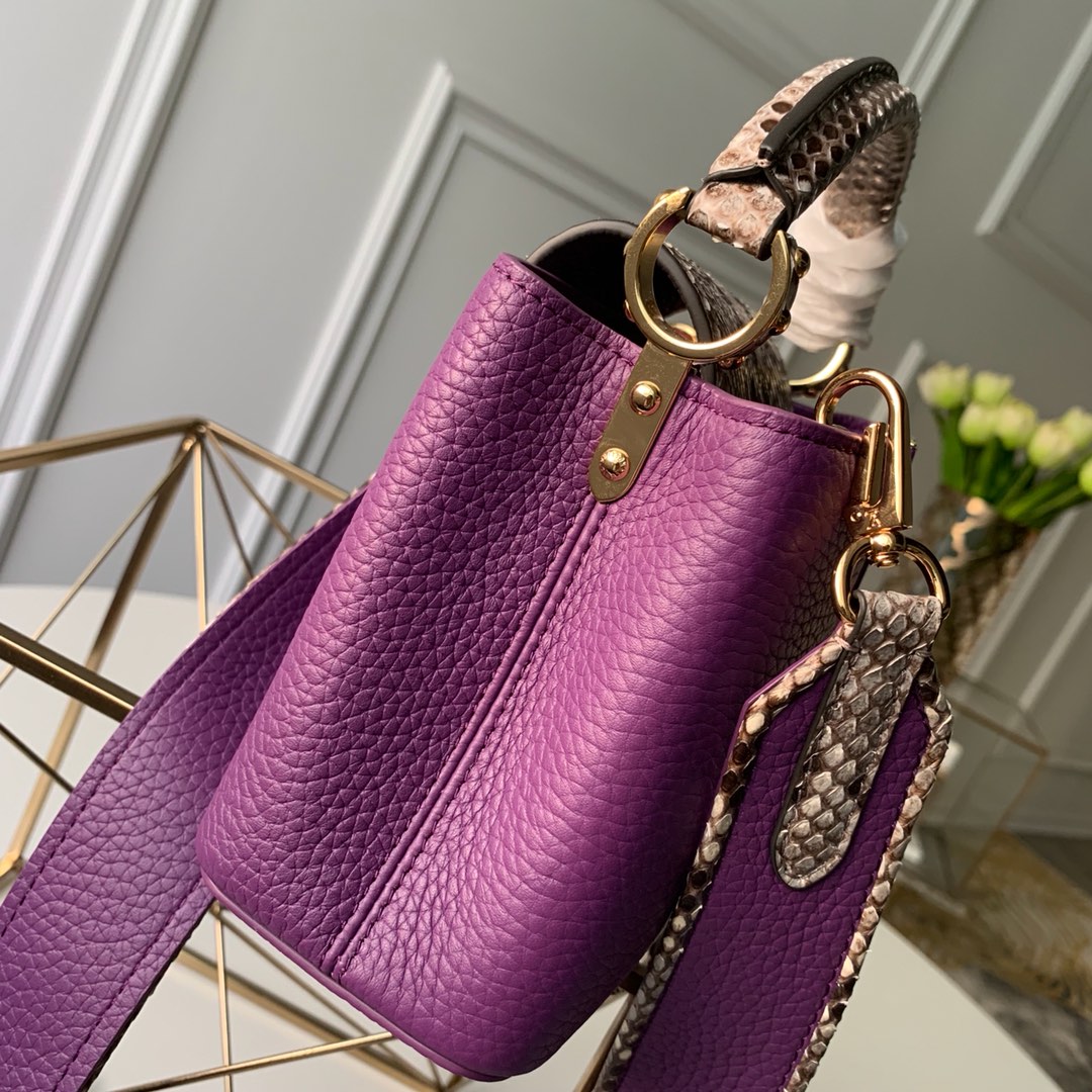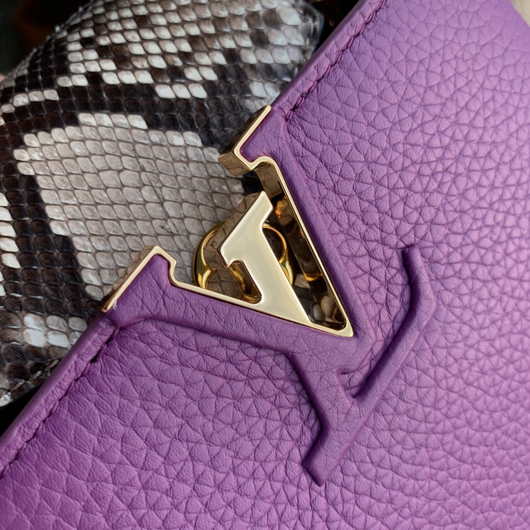 Original CAP MINI N95509 Purple This Capucines handbag Selected Python Skin to embellish the permanent black taurillon leather, exotic python pattern wrapped lu letter LU letters