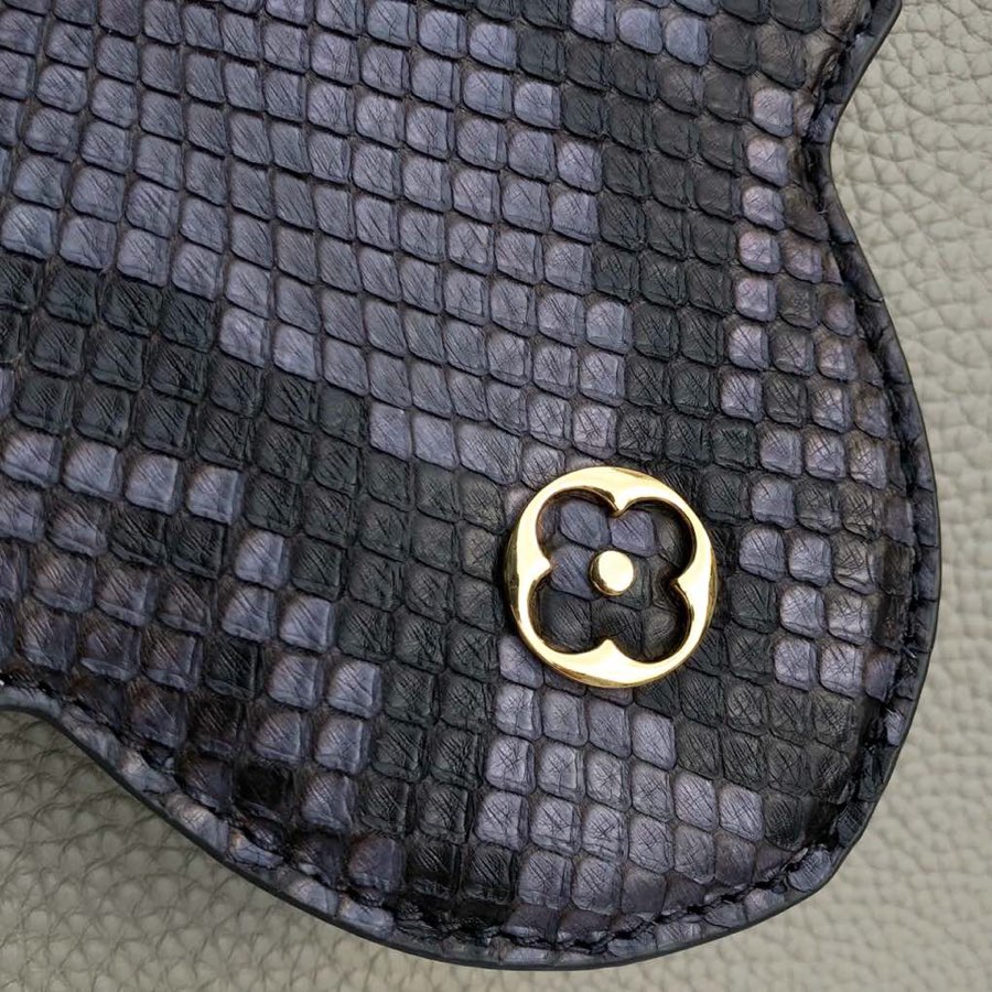 This Capucines small handbag is based on Taurillon leather. The flip and opening and closing are used to use python skin embellishments. The classic LV letter is also more elegant against the python pattern.The double -shaped design of the Capucines handbag following the flip: folded in the bag to show the LV logo, or placed in the outside of the bag with an implicit restraint shape.Size: 31.5 x 20.0 x 11.0 cm.
