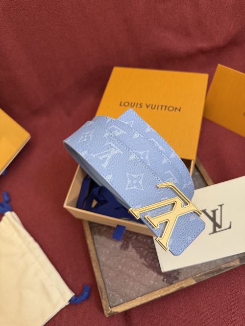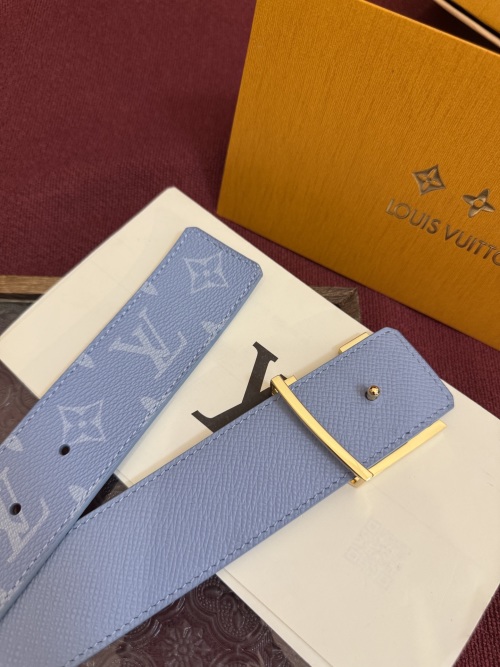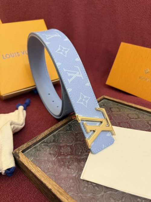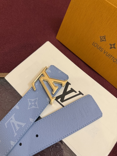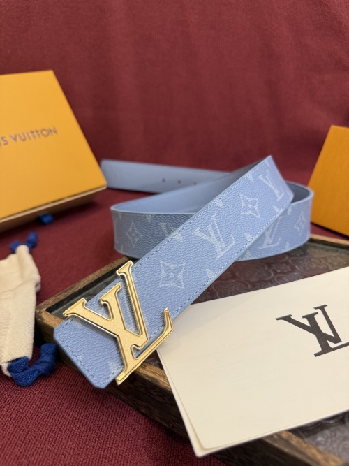 Louis Vuitton LV Initiales 4 cm Belt - Blue Canvas with Gold Buckle