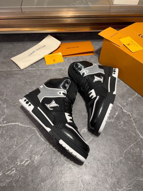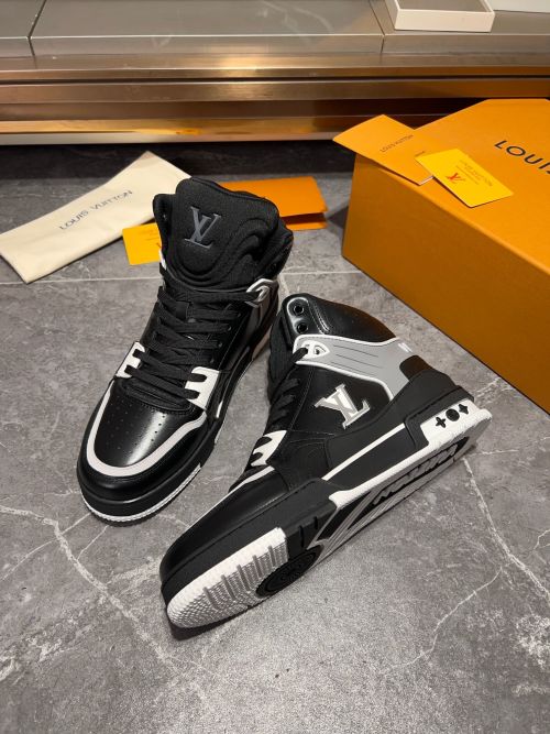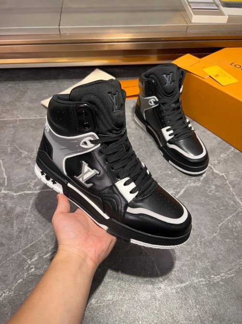Step up your style with these Louis Vuitton high-top sneakers. Crafted from soft leather with a Damier pattern, these shoes offer both luxury and comfort.
