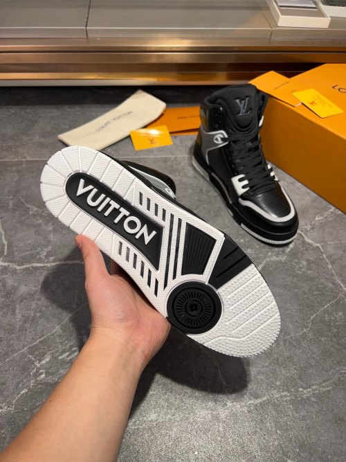 Tags: Black leather sneakers, Damier Pattern Shoes, Designer Men's Sneakers, High Top Leather Sneakers, Louis Vuitton Sneakers men, Luxury High Top Shoes