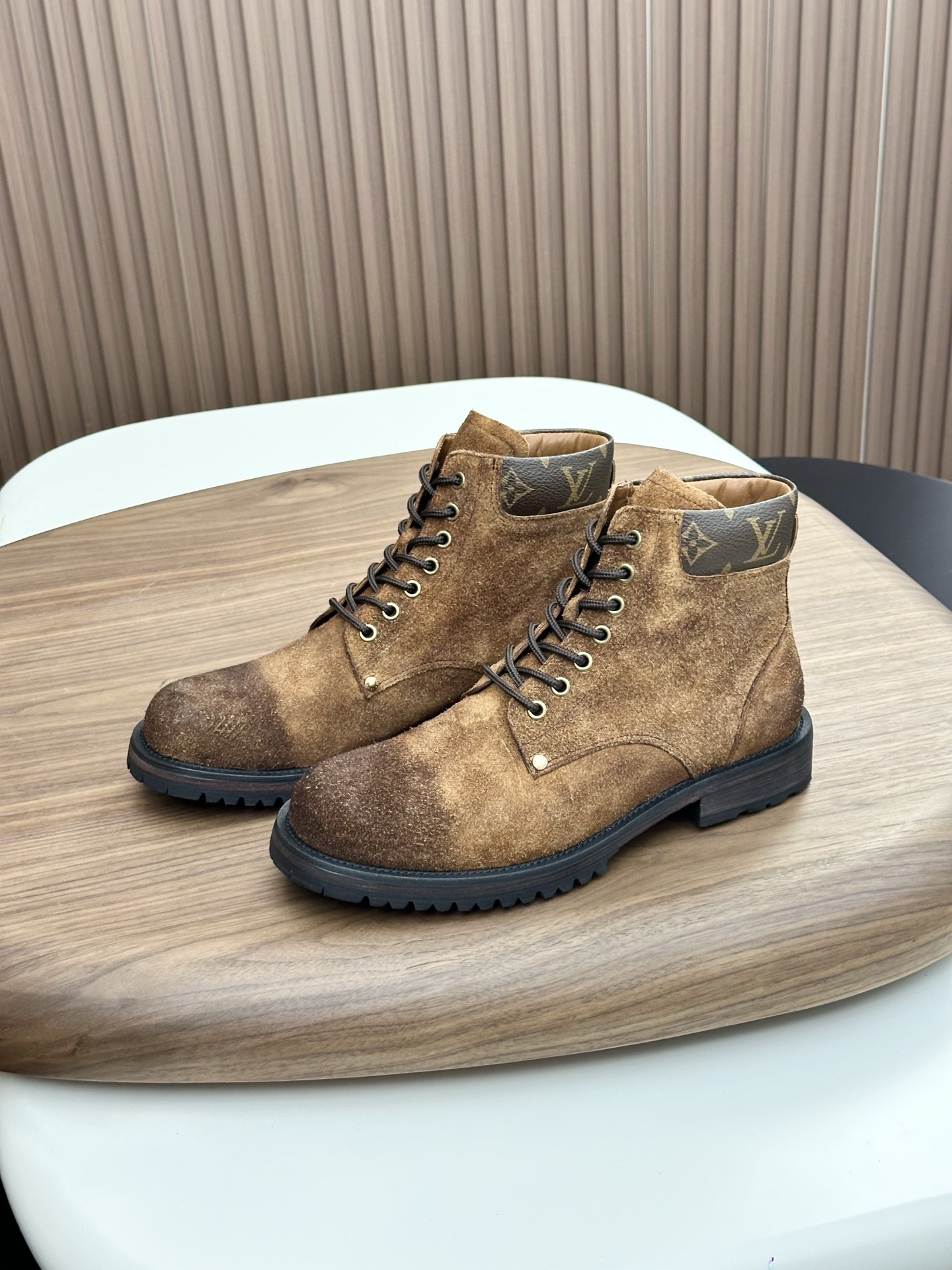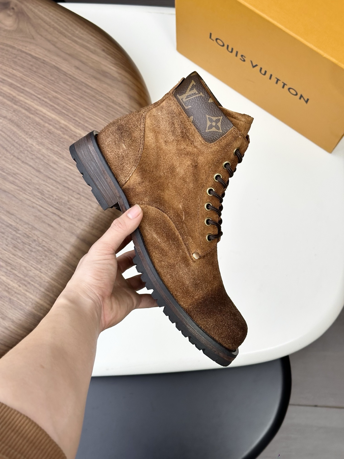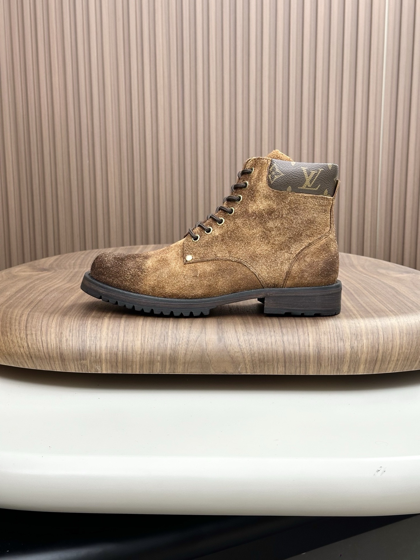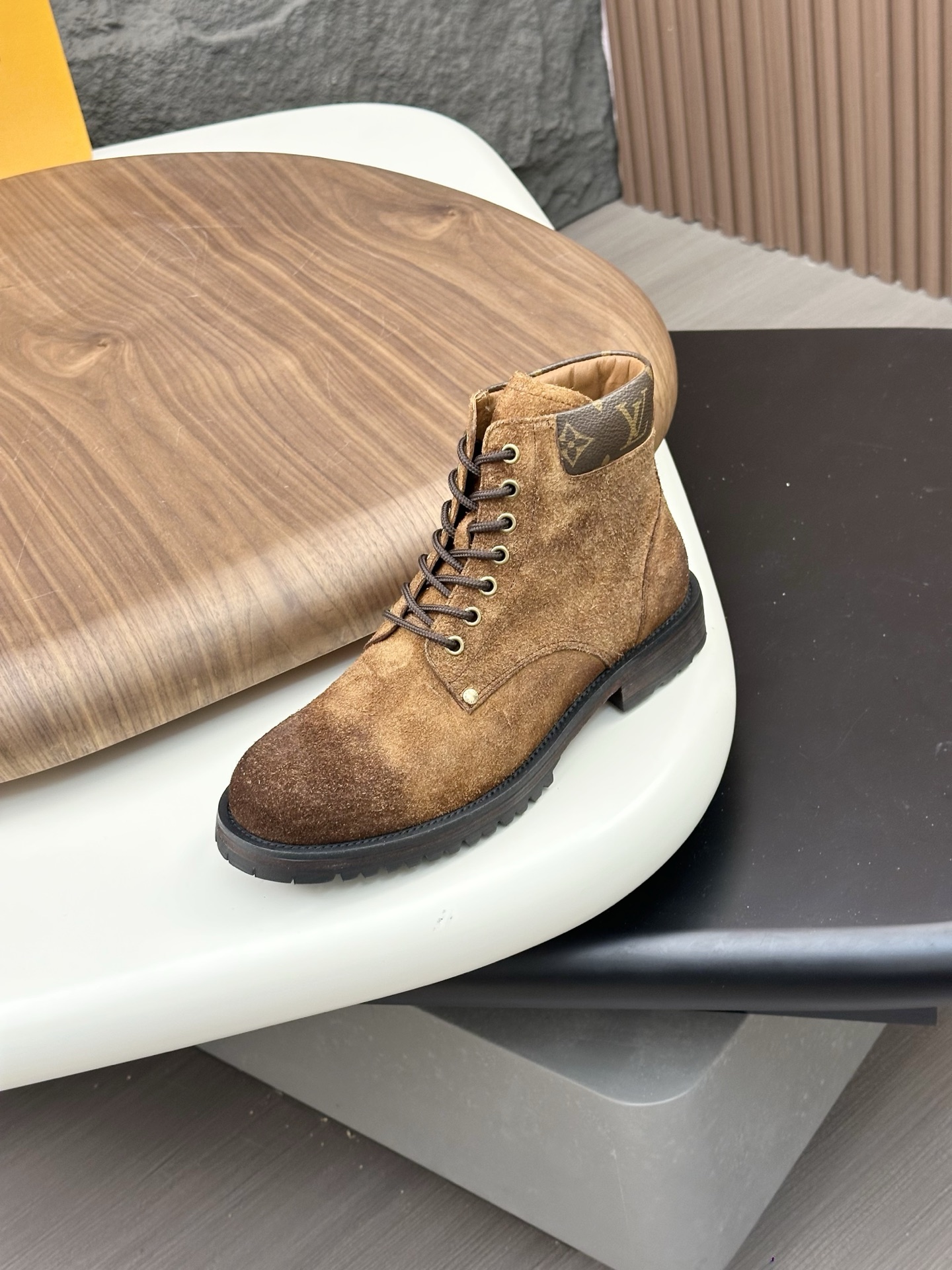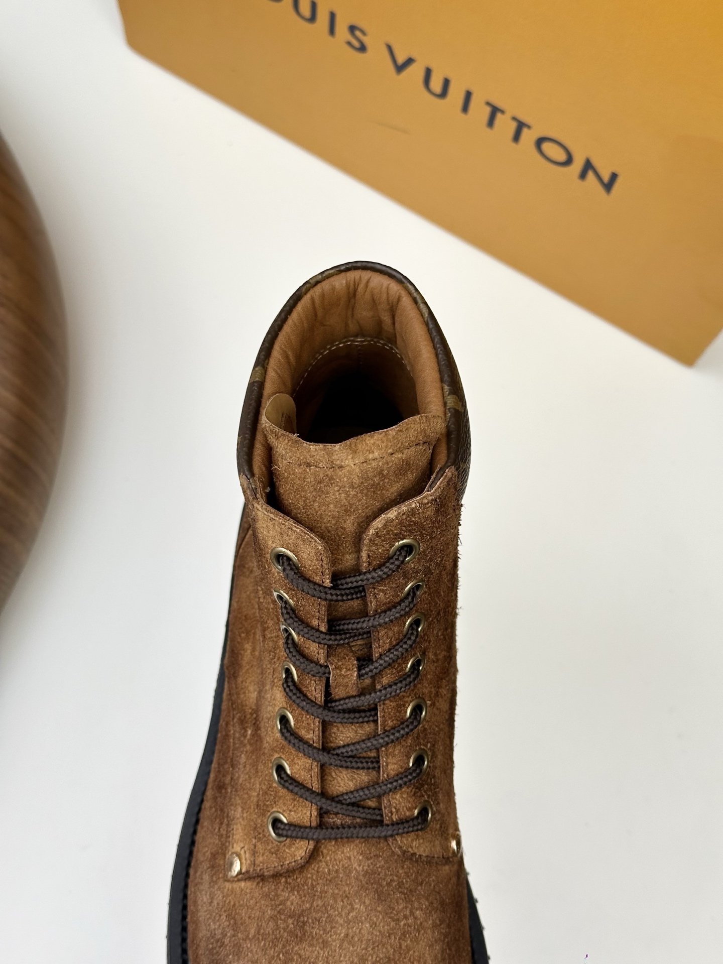 Tags: Designer Ankle Boots, High-Top Suede Shoes, Louis Vuitton Dress Boots, Luxury Leather Boots, Men's Formal Footwear, Premium Suede Boots