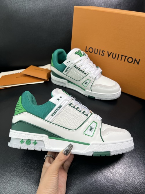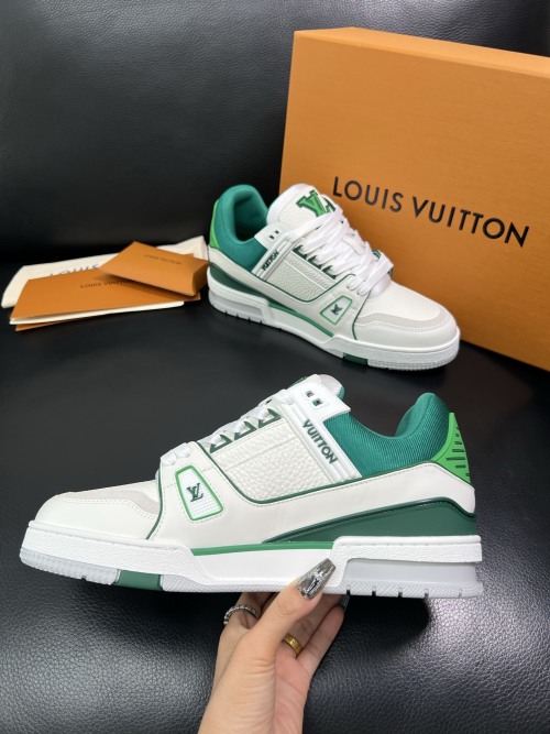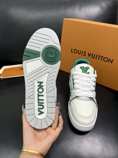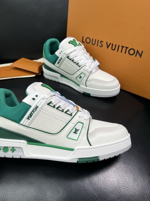 Louis Vuitton Men's White & Green Leather Low Top Sneakers Size 38-44