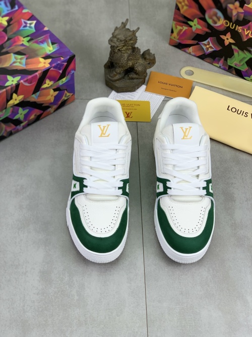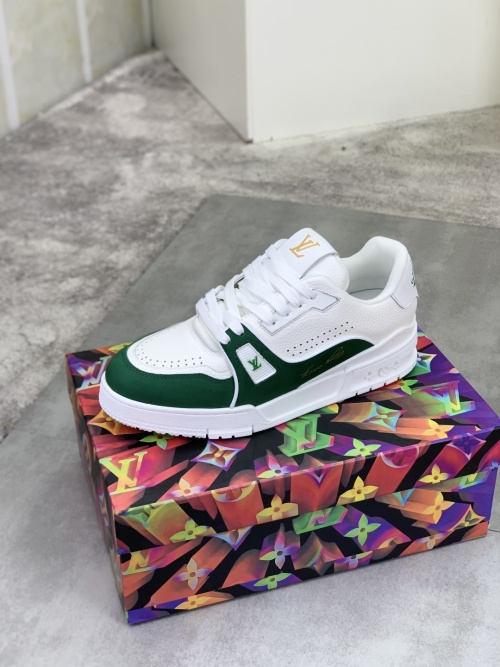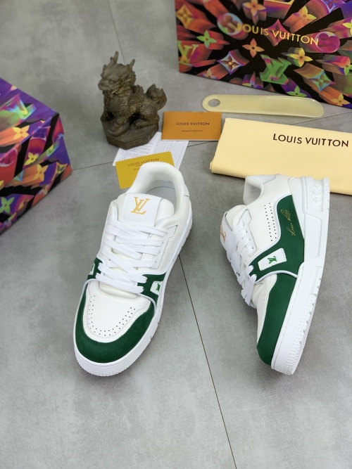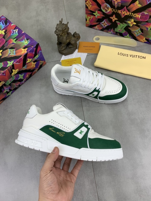 Tags: Designer Trainer Shoes, Louis Vuitton Sneakers, Luxury Leather Sneakers, Men's Fashion Sneakers, White and Green Sneakers