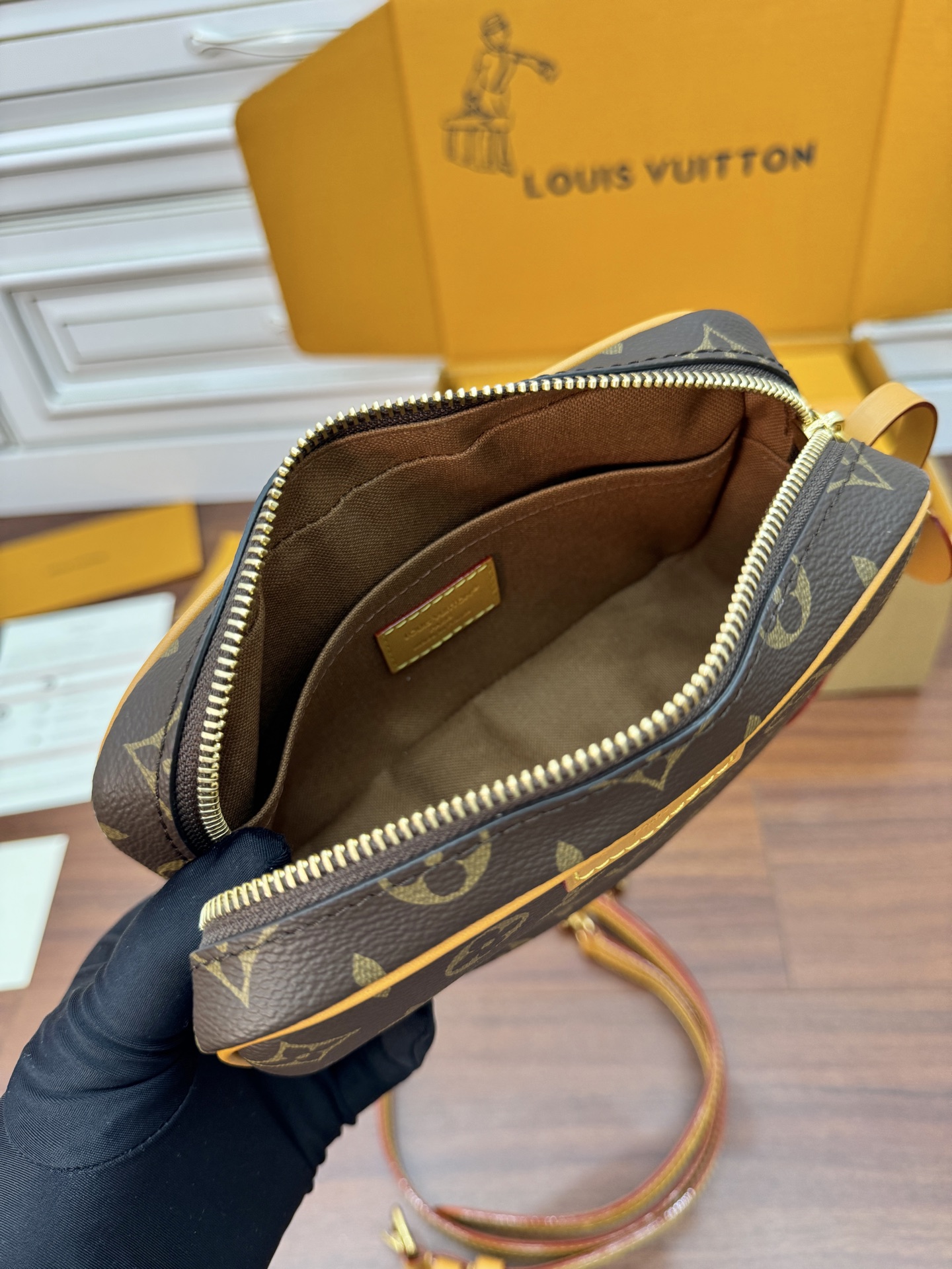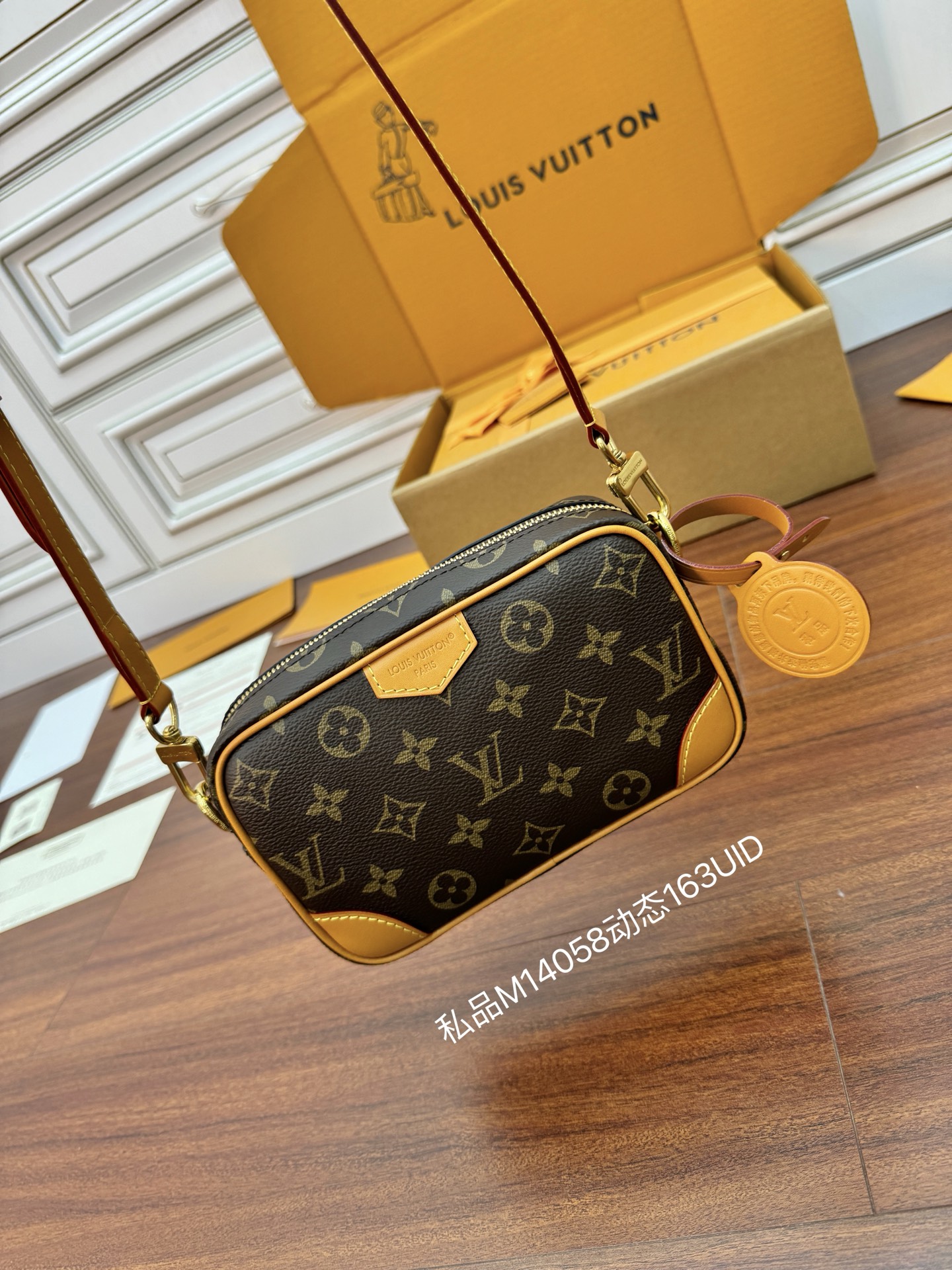 Tags: Designer Crossbody Bag, Fashionable Box Bag, Louis Vuitton Camera Bag, Luxury Leather Strap Bag, Monogram Canvas Bag