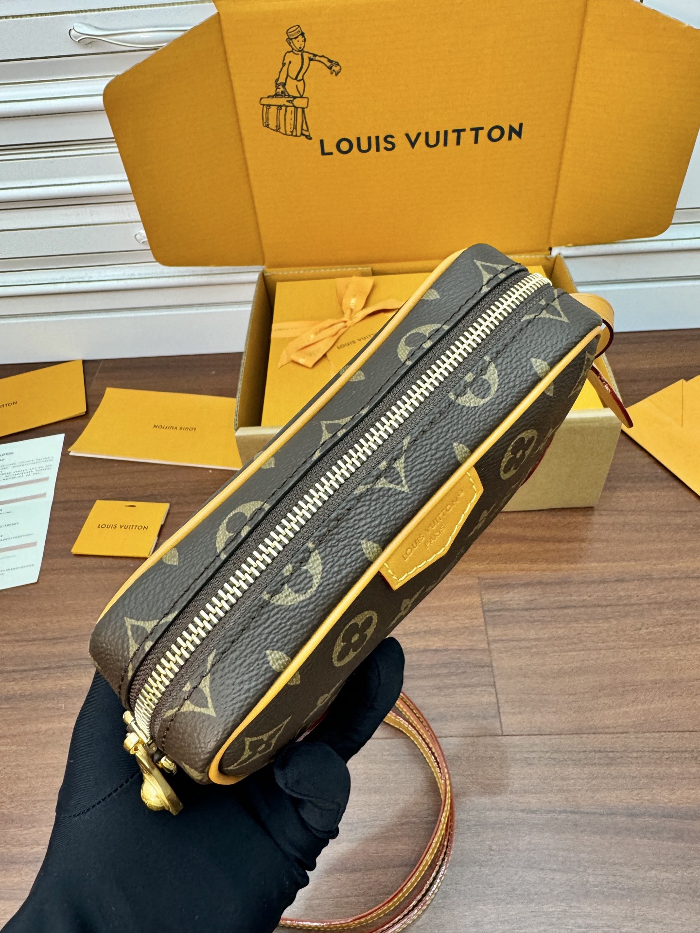 This Louis Vuitton camera box bag is a timeless accessory that combines luxury and practicality.