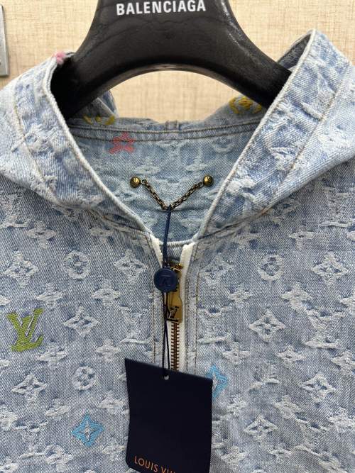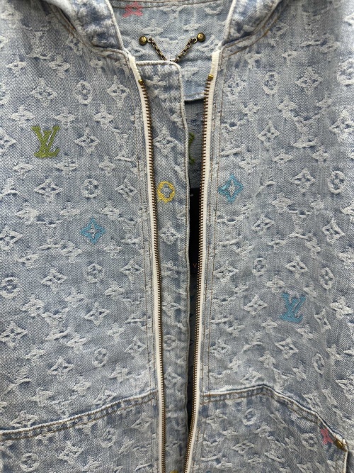 Tags: Designer Hoodie Jacket, Embroidered Denim Jacket, Louis Vuitton Denim Jacket, Luxury Streetwear Jacket, LV Denim Zip Up, Monogram Embossed Jacket