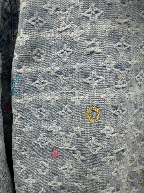 This Louis Vuitton denim jacket is a statement piece, blending luxury with streetwear appeal. The iconic Monogram pattern and vibrant embroidery make it a standout addition to any wardrobe.