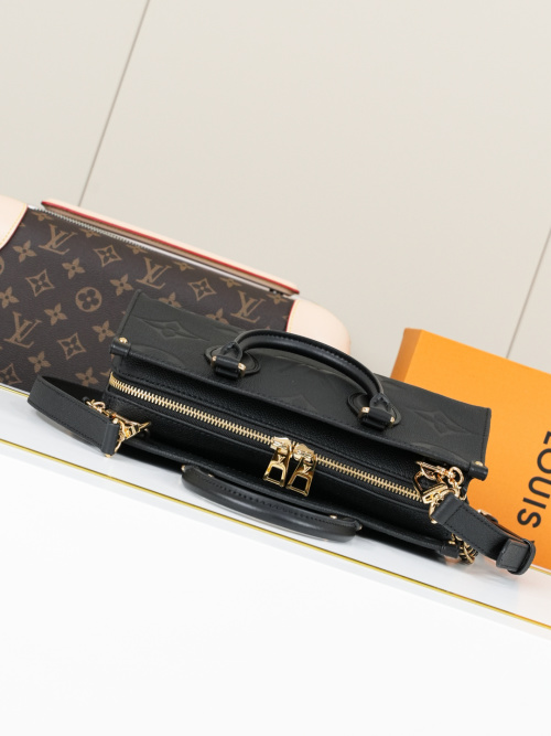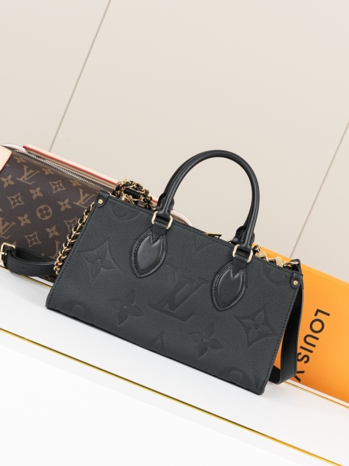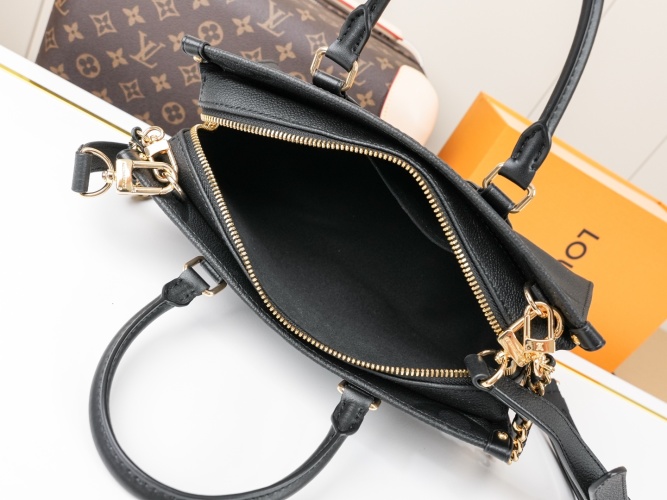 Tags: Black Leather Tote Bag, Designer Top Handle Bag, Lv On The Go East West, Monogram Empreinte Leather Bag, Removable Chain Strap Bag