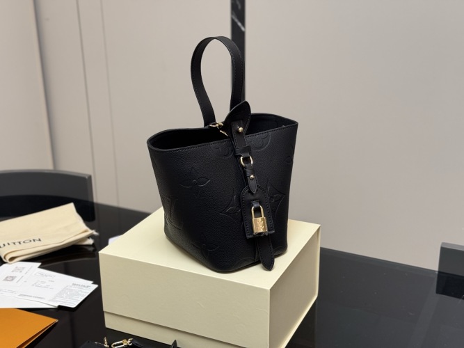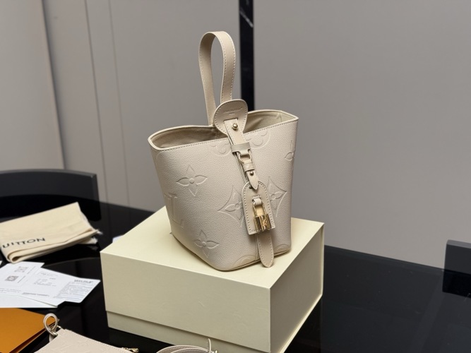 Tags: Designer Bucket Bag, Grey Designer Bag, Louis Vuitton Bucket Bag, Luxury Handbag, Monogram Empreinte Leather Bag