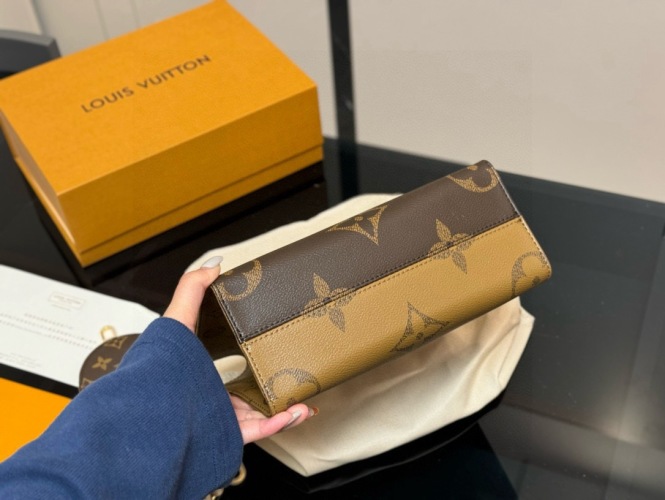 The Louis Vuitton Onthego bag is stylish with a hidden shoulder strap. Can be carried on the shoulder or by hand. Dimensions: 26.20cm.