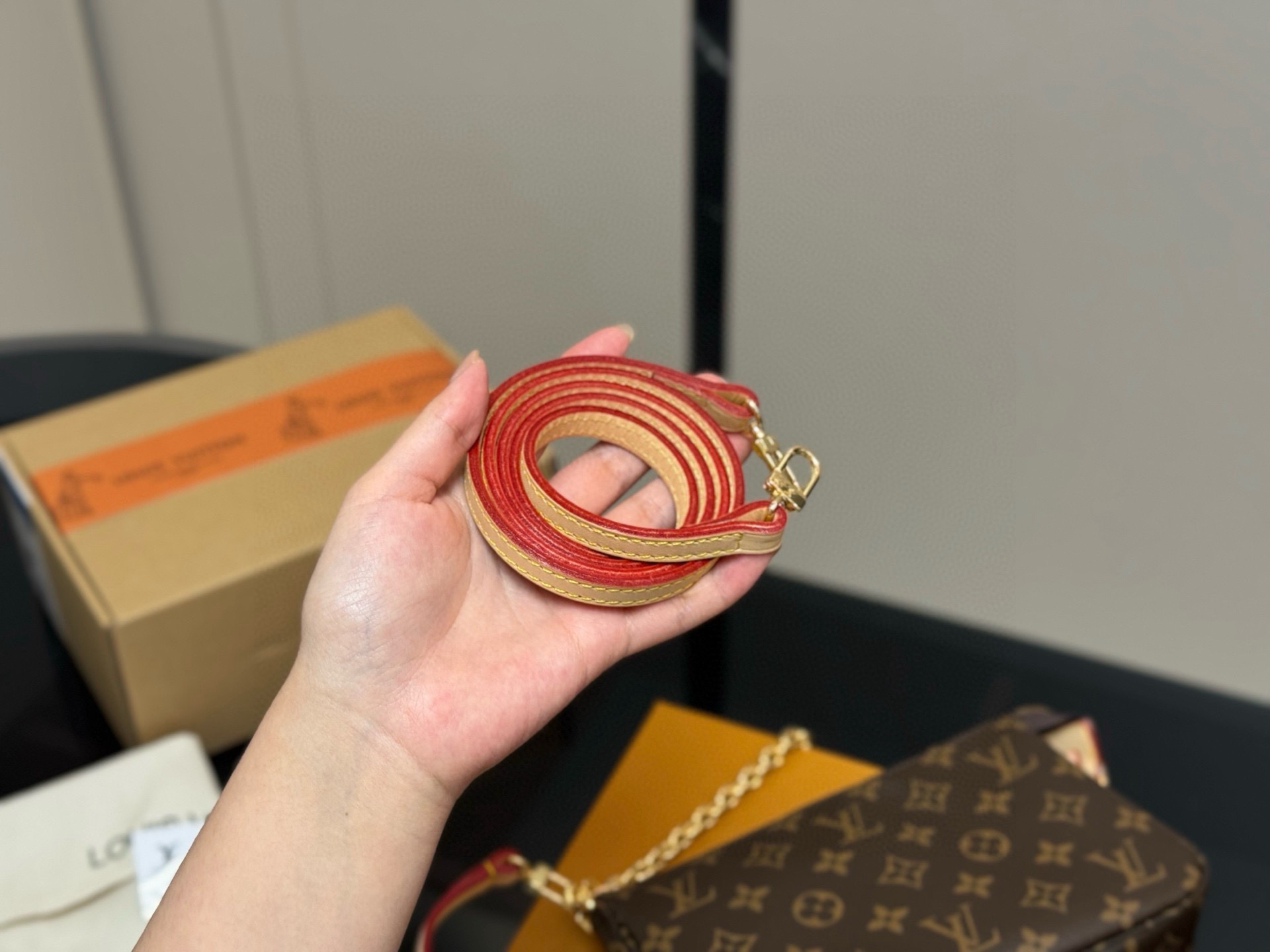 Elevate your style with this iconic Louis Vuitton Pochette Accessoires. Includes chain and leather straps for versatile wear.