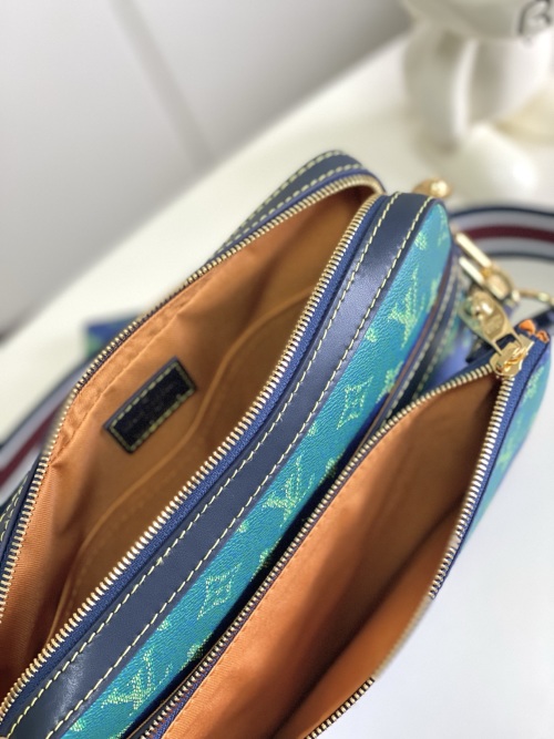 Tags: Designer Crossbody Bag, Louis Vuitton Messenger Bag, Luxury Fashion Bag, Monogram Trio Pouch, Removable Pocket Bag, Striped Canvas Bag
