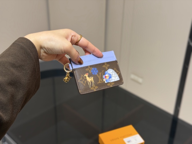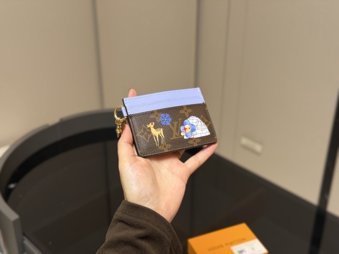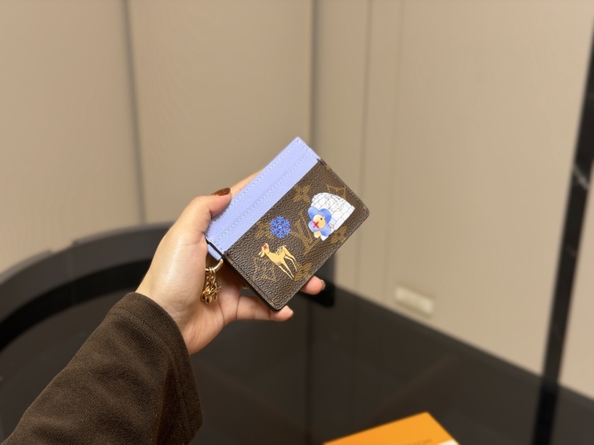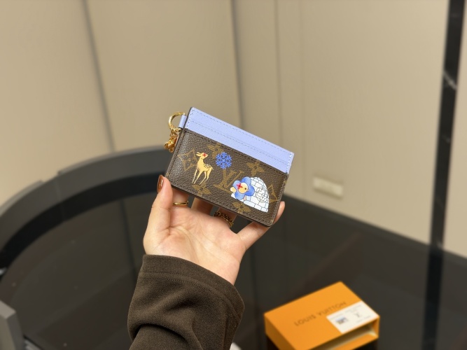 Charming Louis Vuitton card holder featuring delightful Christmas-themed illustrations. A perfect blend of style and functionality!