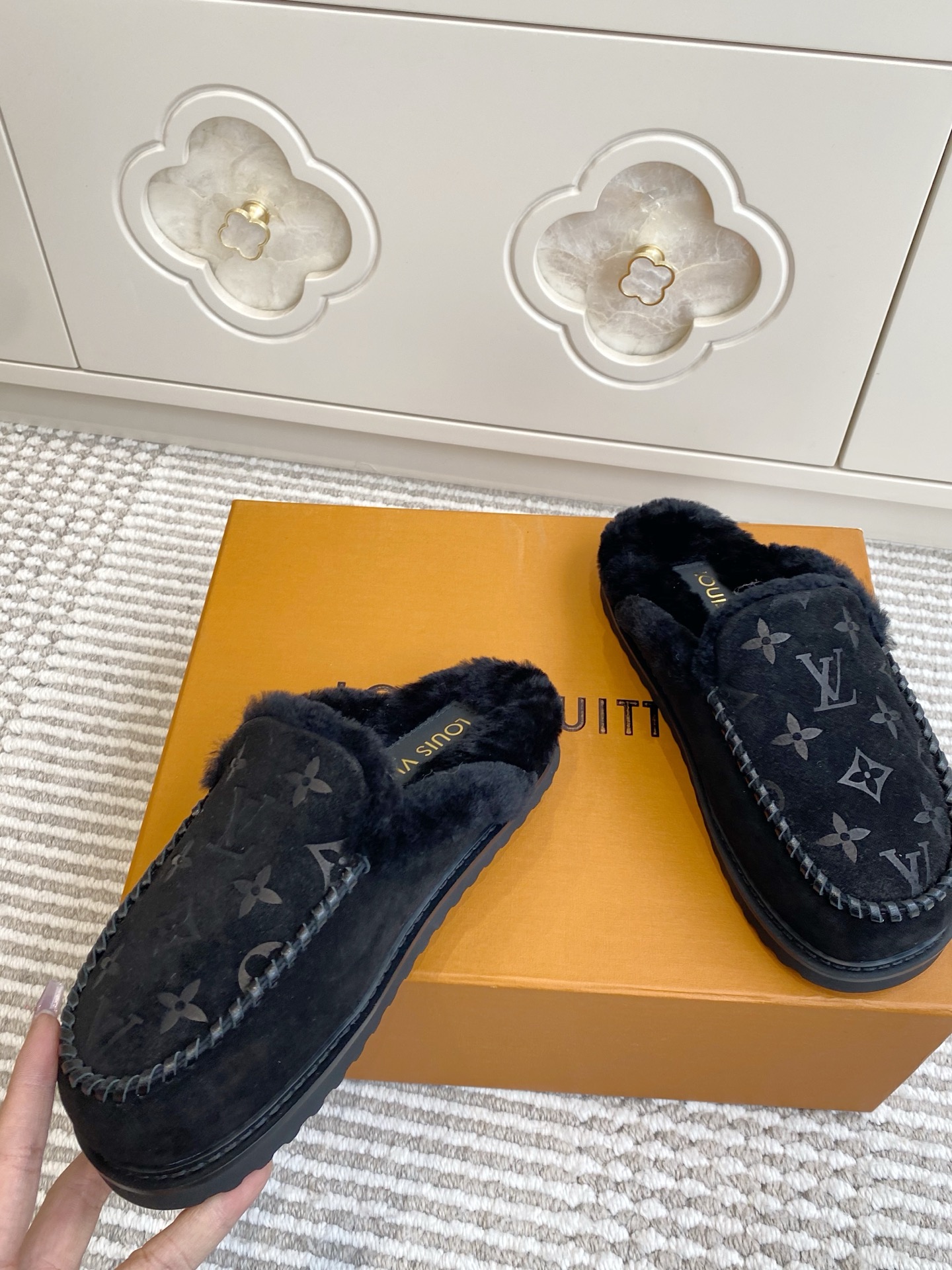 Tags: Designer Mule Shoes, Louis Vuitton Mules, Luxury Indoor Slippers, Suede Shoes Women, Warm Winter Slippers, Wool Slippers
