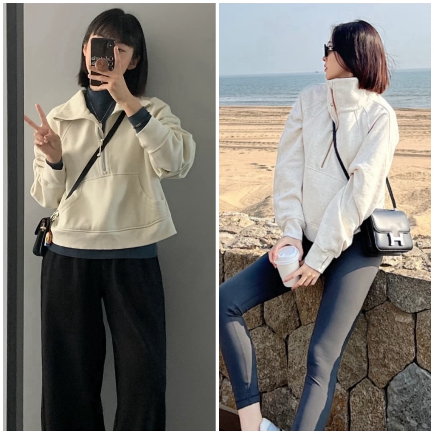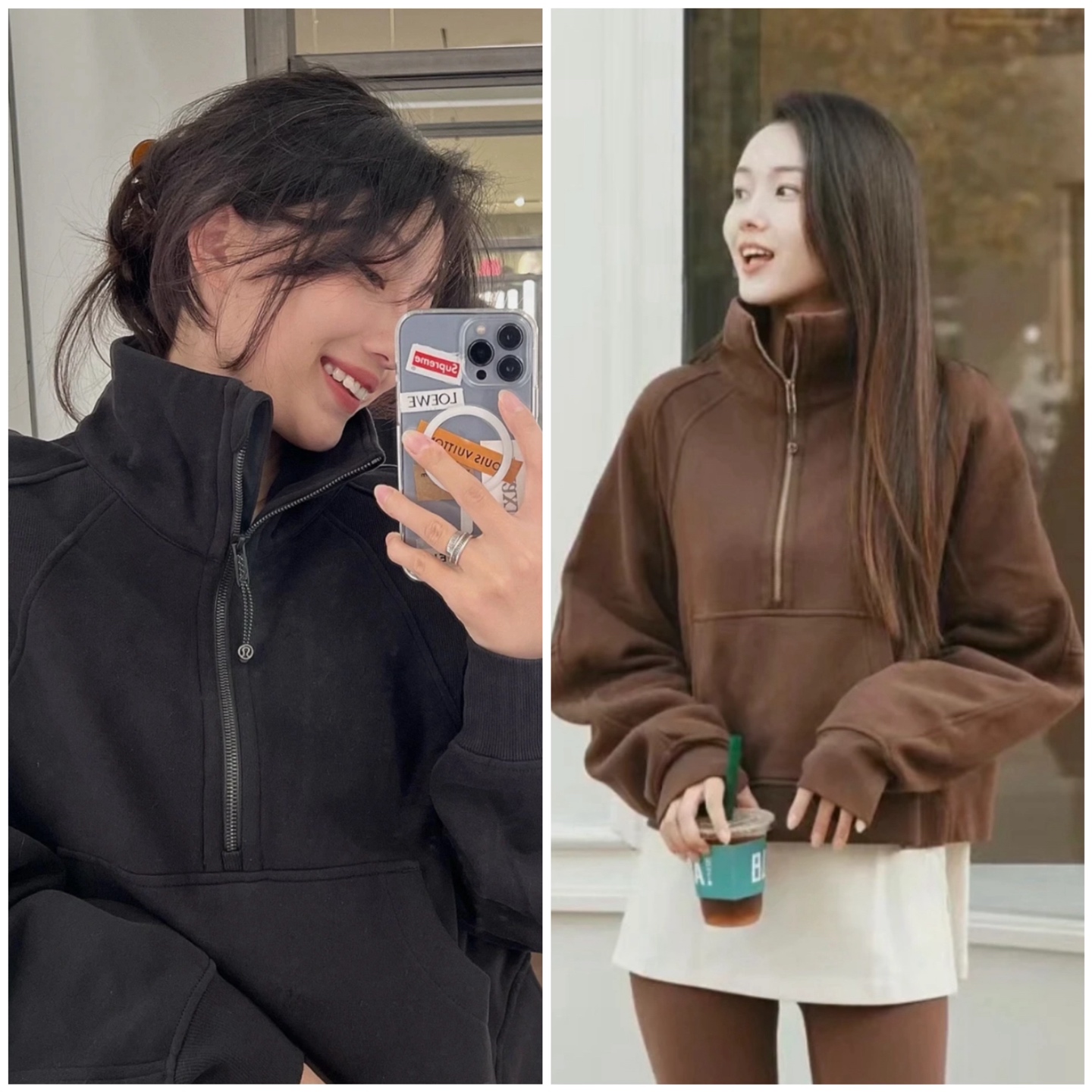 Lulu Half-Zip Scuba Fleece Pullover Yoga Casual Sweatshirt Jacket