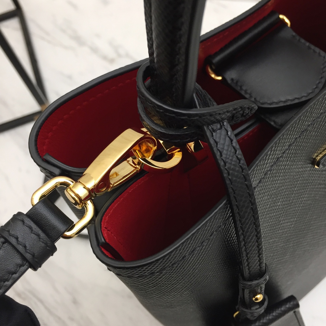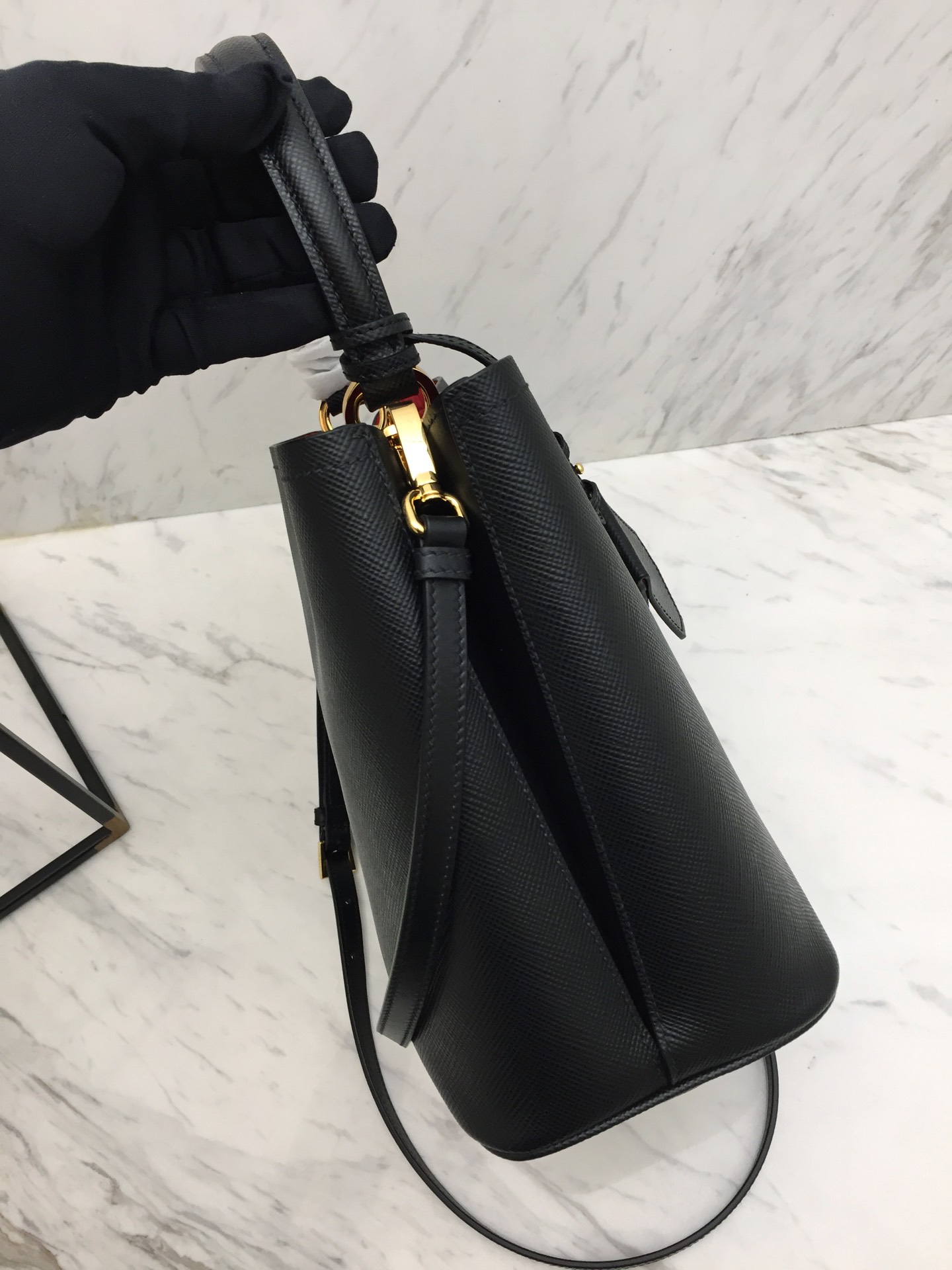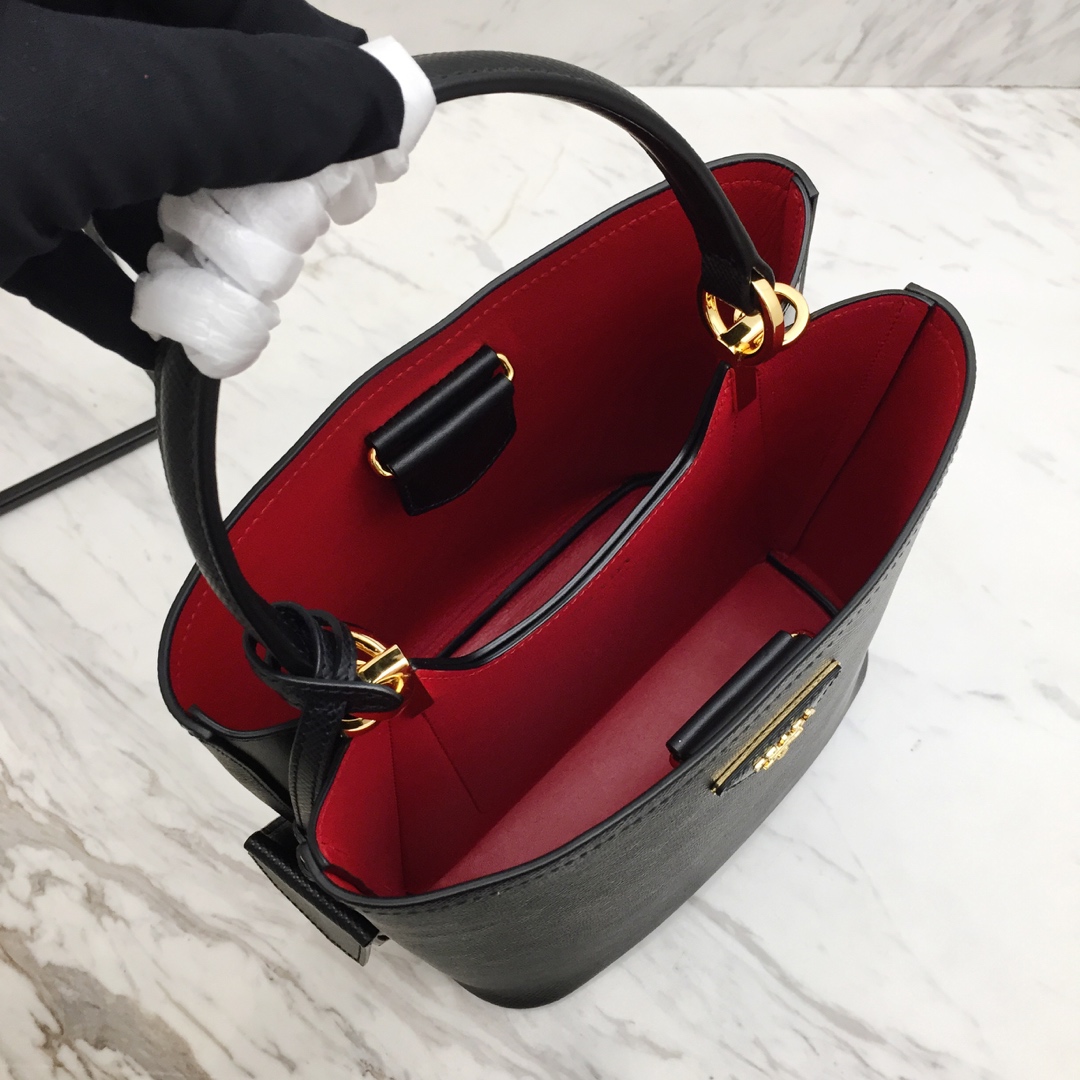 1050 P's latest double handbag, bucket-shaped shopping bag, central pocket with covered magnetic buckle, very thoughtful design, fashionable and safe and convenient, contrasting color soft sheepskin lining, using the original Italian fragrance [strong ]thick