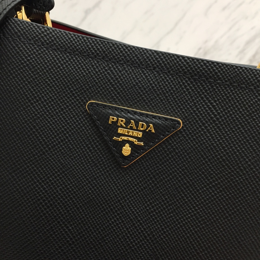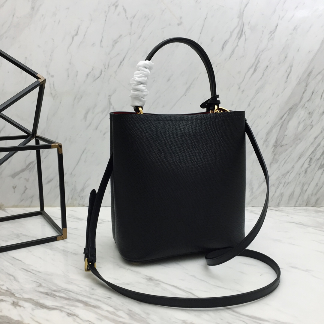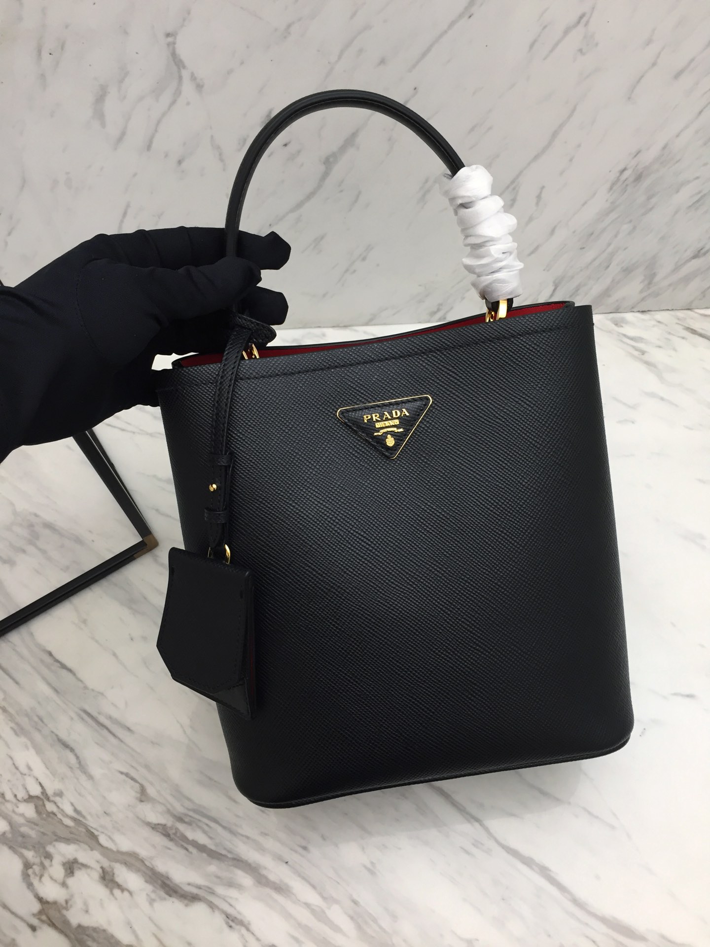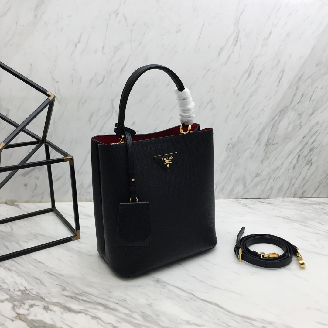 1050 P's latest double handbag, bucket-shaped shopping bag, central pocket with covered magnetic buckle, very thoughtful design, fashionable and safe and convenient, contrasting color soft sheepskin lining, using the original Italian fragrance [strong ]thick