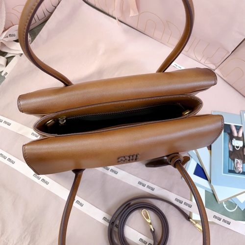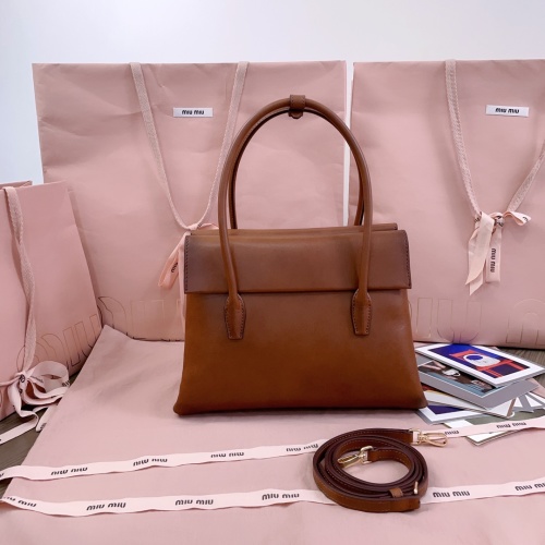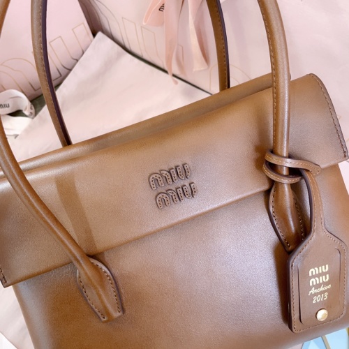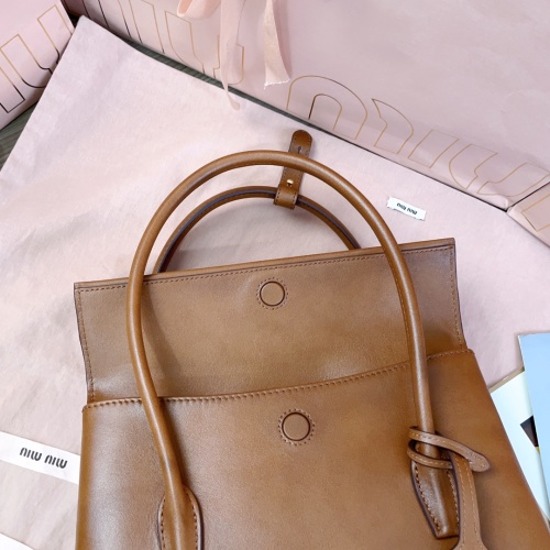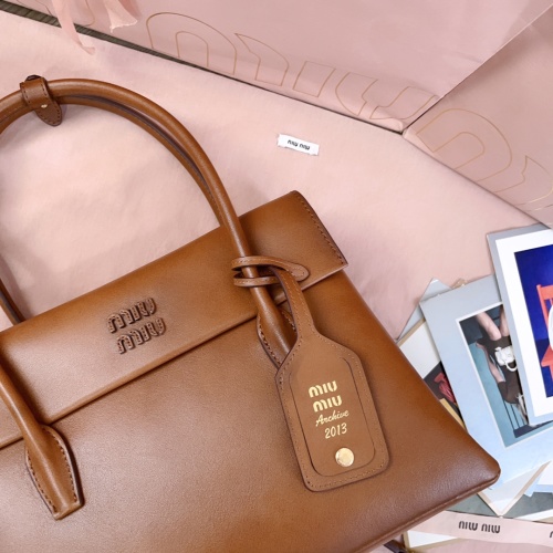 Tags: Brown Leather Top Handle Bag, Calfskin Leather Bag, Designer Handbag, Miu Miu Handbag, Structured Leather Handbag