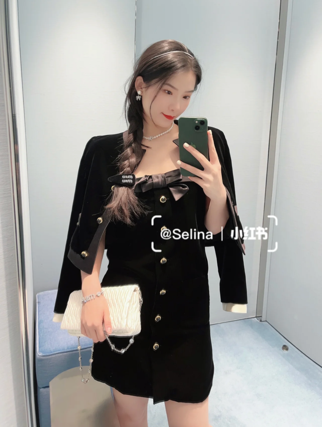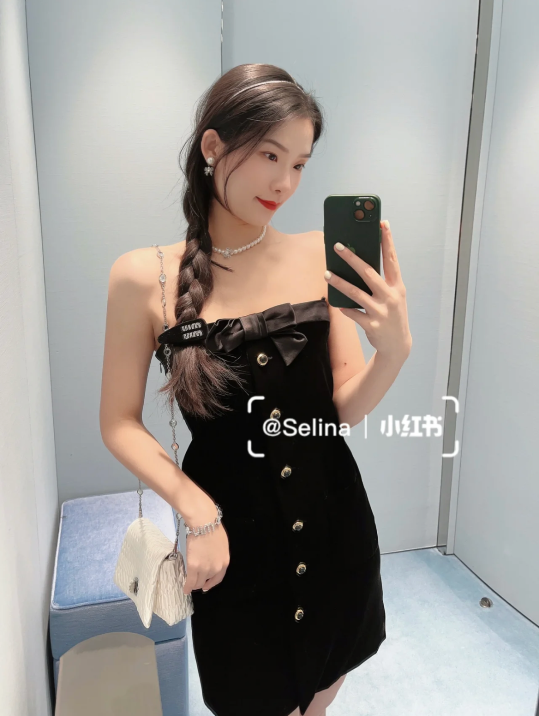 💙New 💙! The latest MIU 23NEW velvet suspender bow decoration dress. Size: SML. .