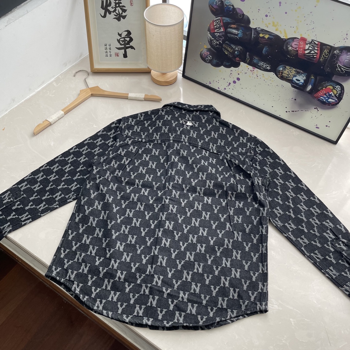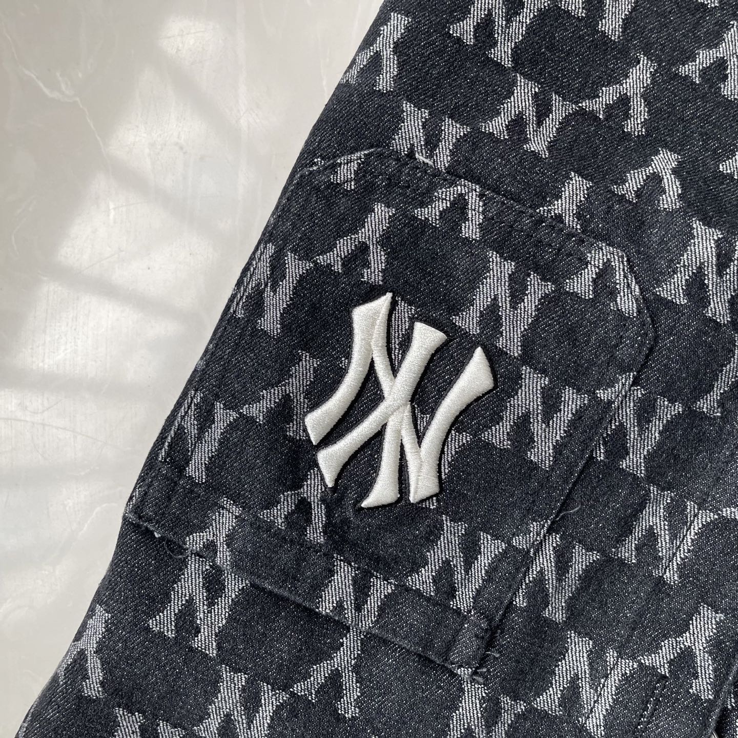 This MLB full-print denim jacket is a must-have for your wardrobe. Its navy blue color and all-over print make it a standout piece for any outfit.