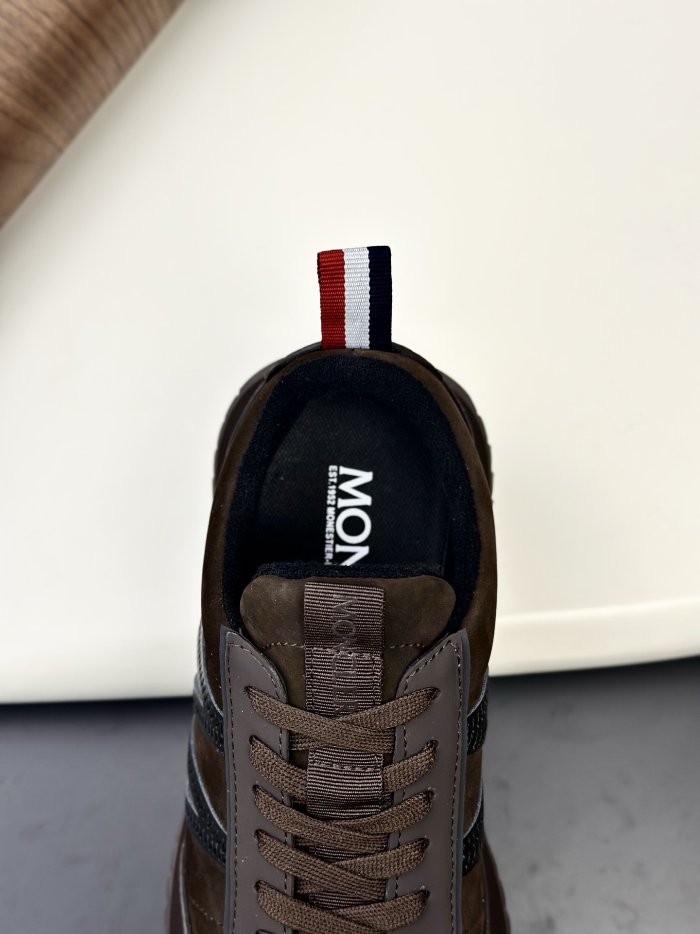 Tags: Breathable Mesh Shoes, Comfortable Walking Shoes, Designer Brand Footwear, High Fashion Sneakers, Moncler Men Sneakers, Suede Leather Sneakers