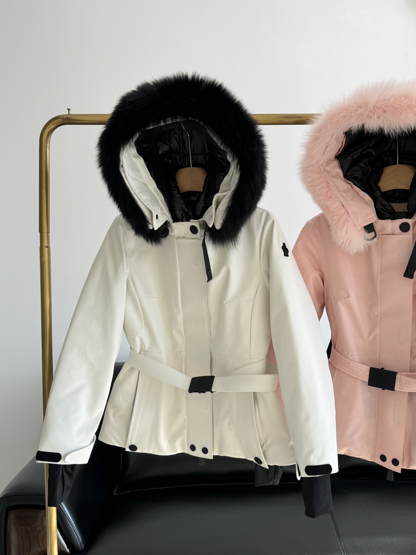 Tags: Adjustable Belt Puffer, Fur Hooded Puffer Coat, Moncler Down Jacket, Slim Fit Winter Coat, White Goose Down Jacket, Women's Ski Jacket