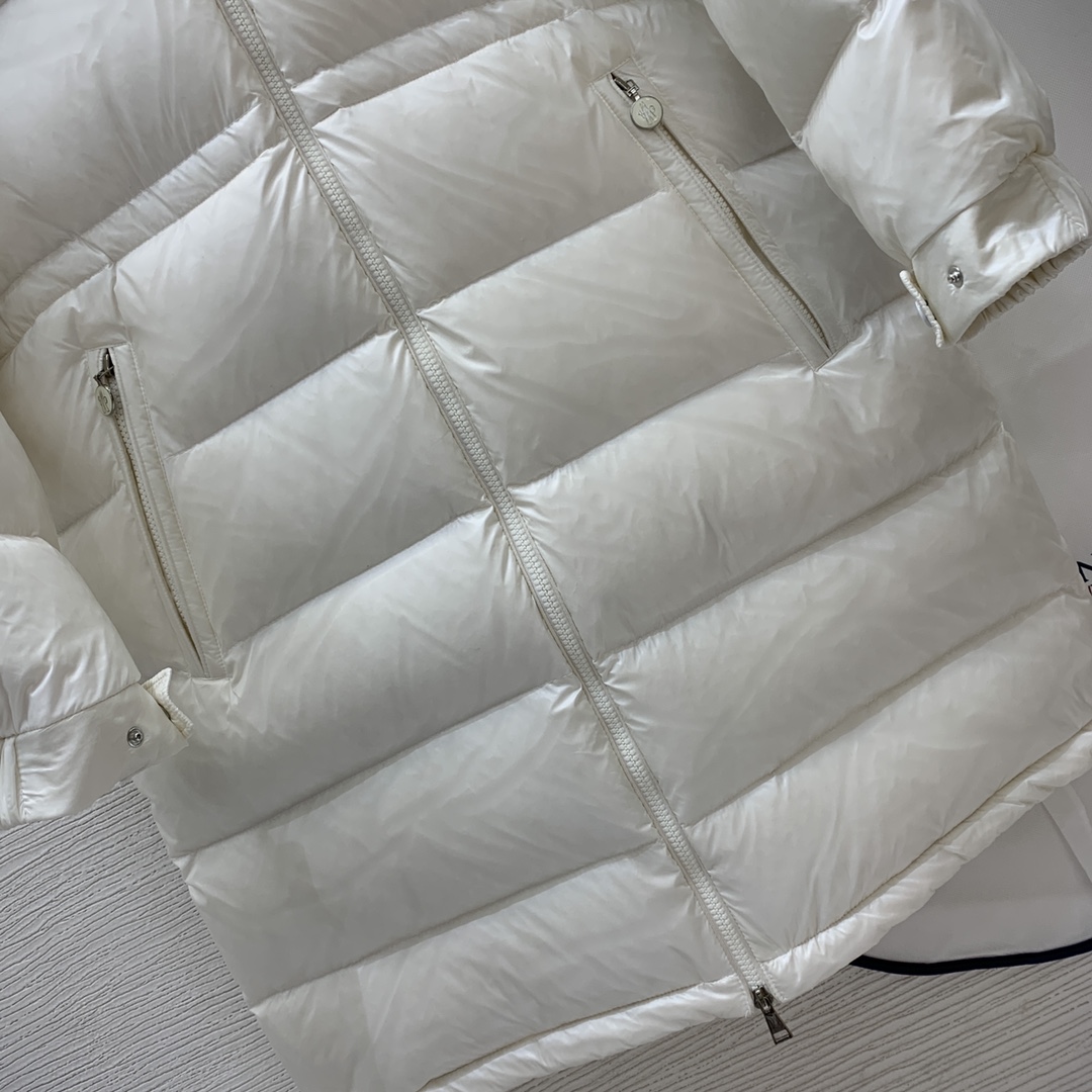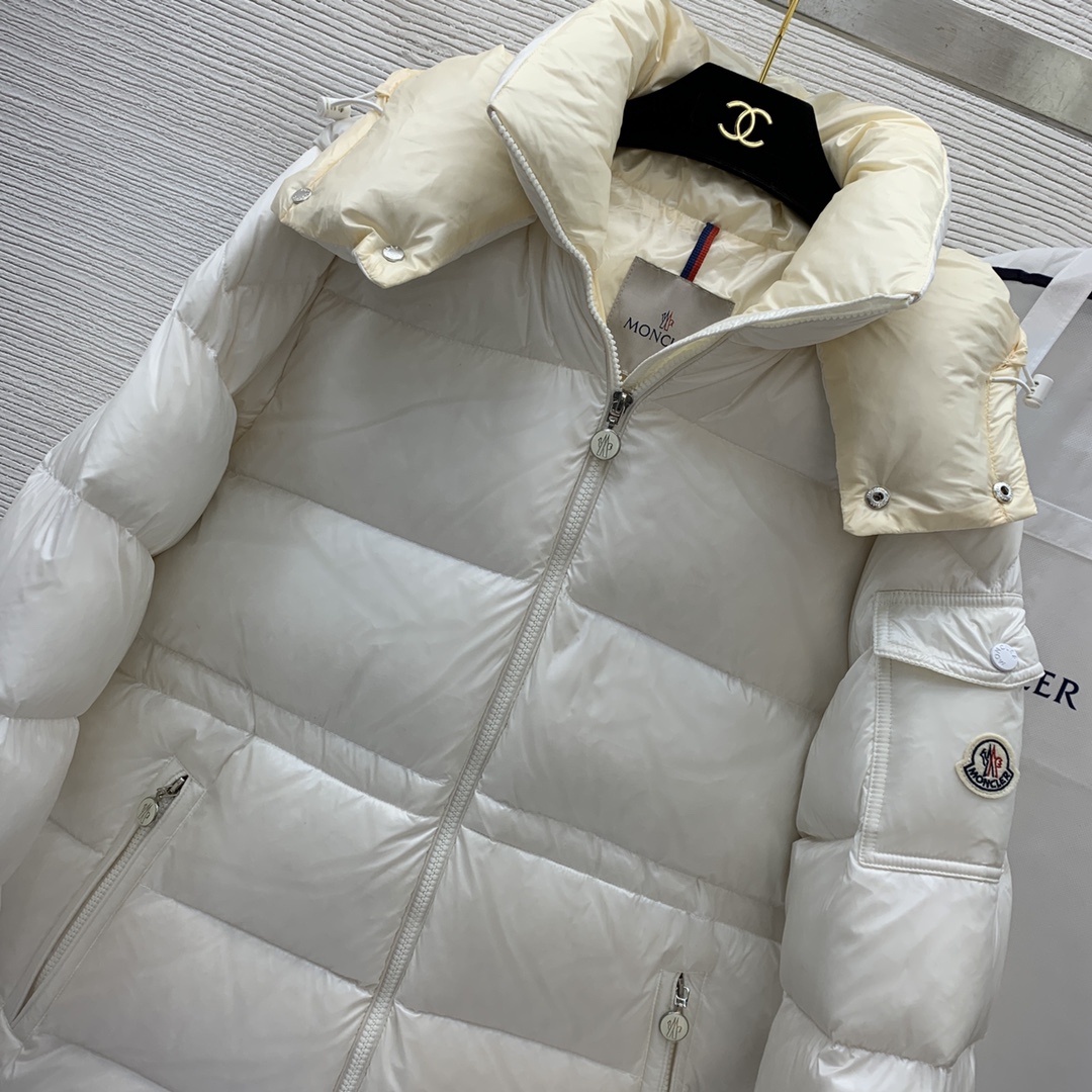 Tags: Mid Length Puffer Coat, Moncler Down Coat, Removable Hood Puffer, White Puffer Jacket, Women's Winter Coat