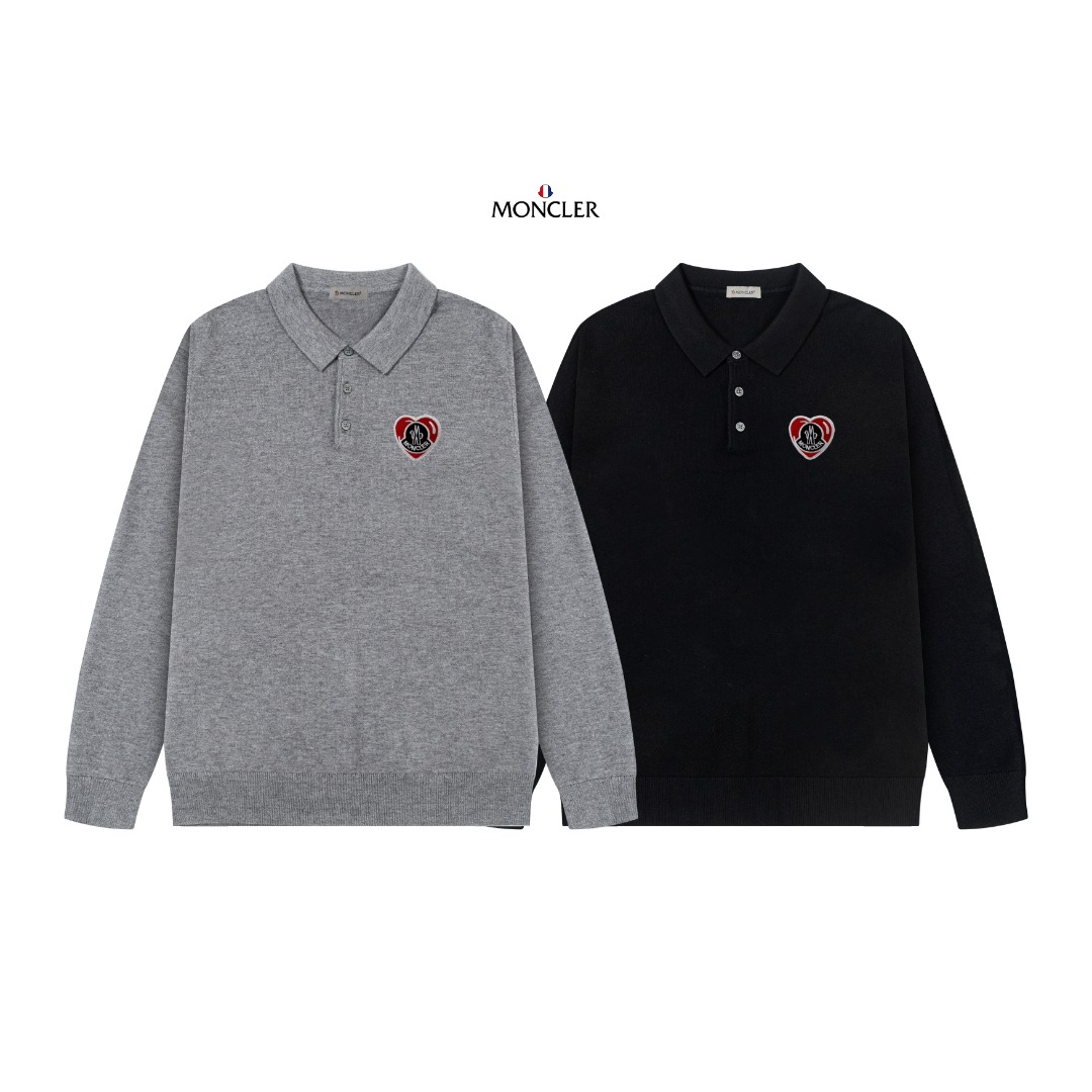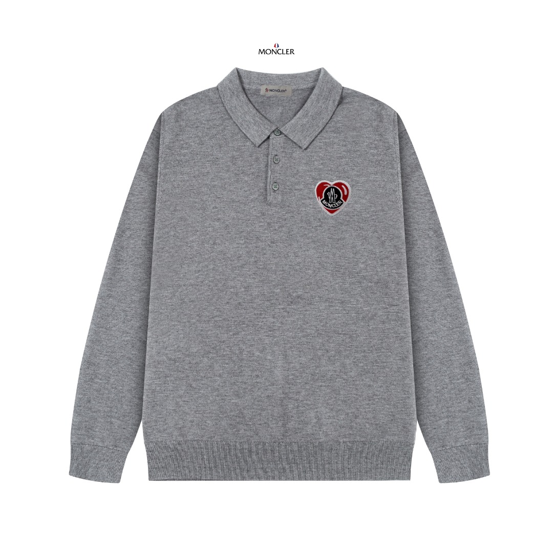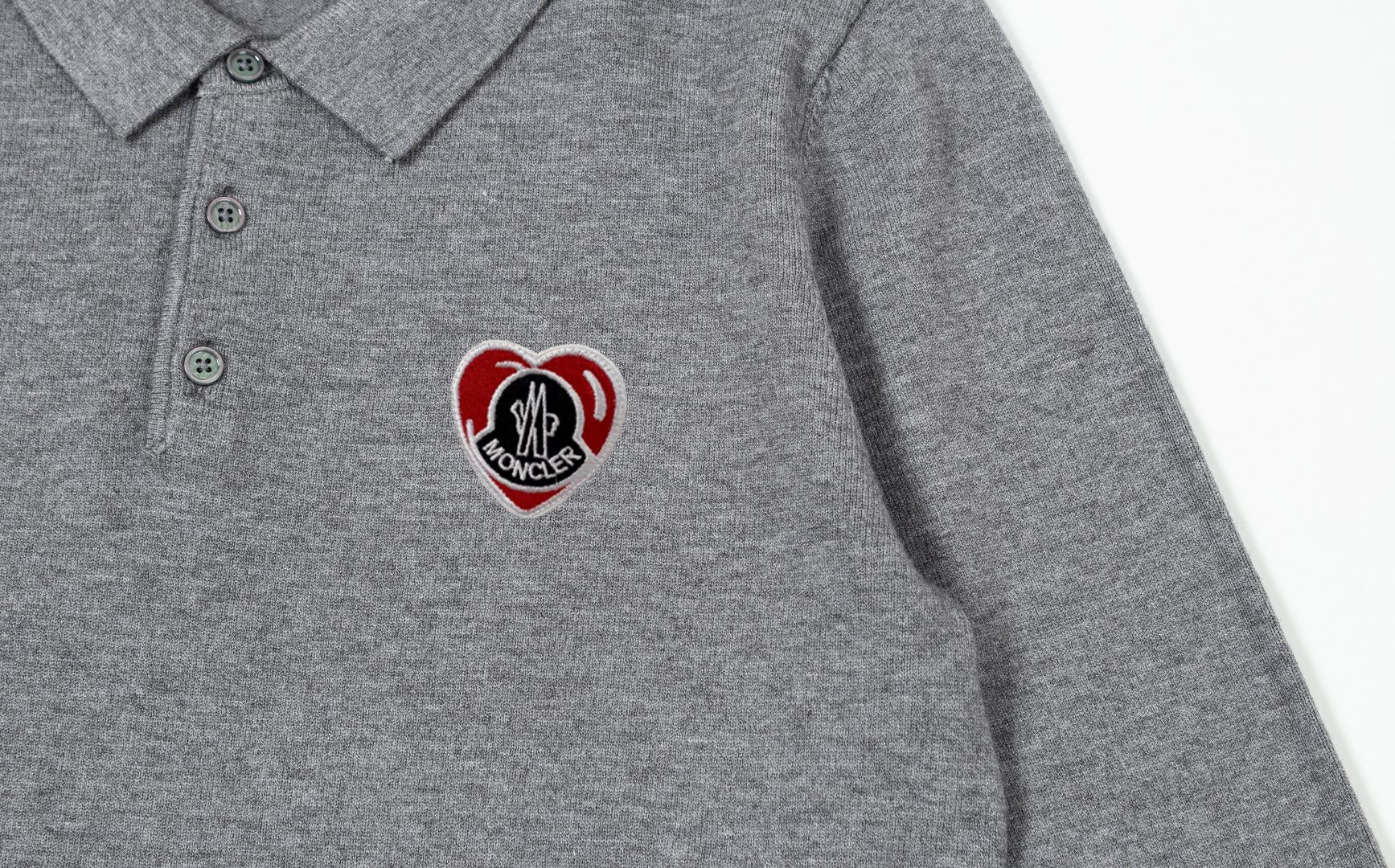 Moncler Wool Polo Sweater - Heart Logo, Long Sleeve, Casual Fit