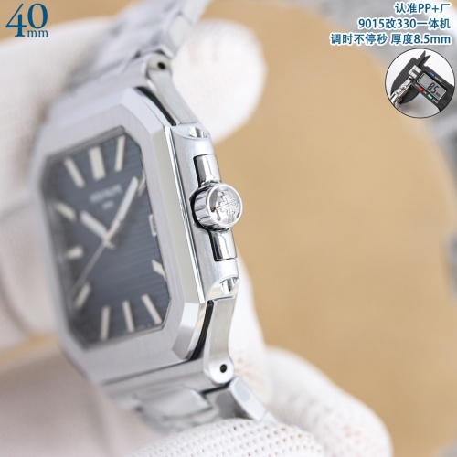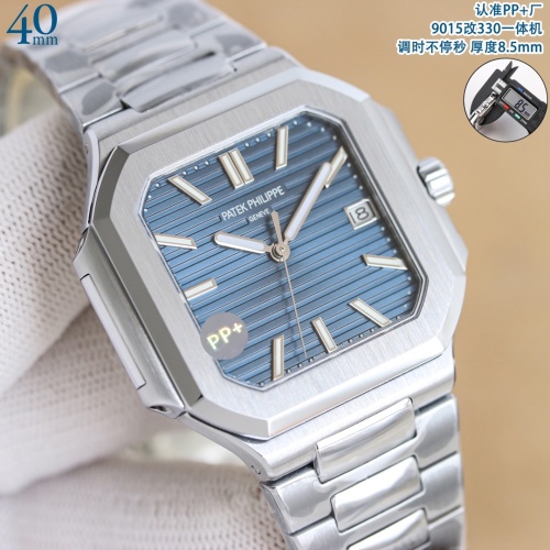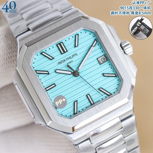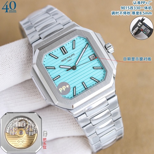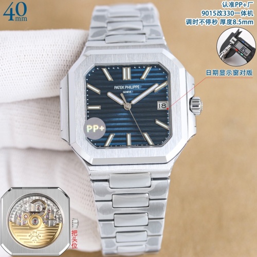 Discover the Patek Philippe Cubitus 5821 watch with custom 9015 movement, stainless steel bracelet, and a striking blue dial. Perfect for any occasion.