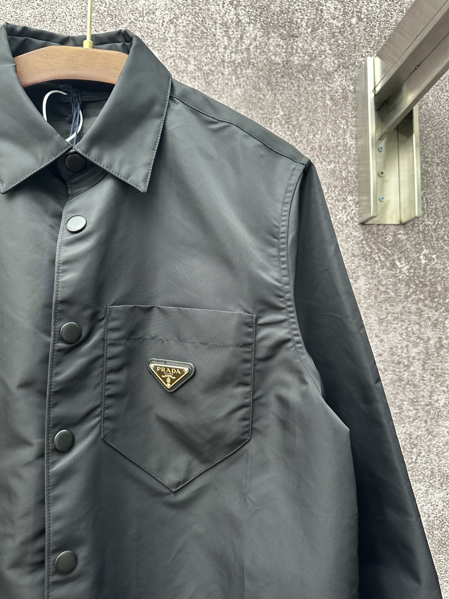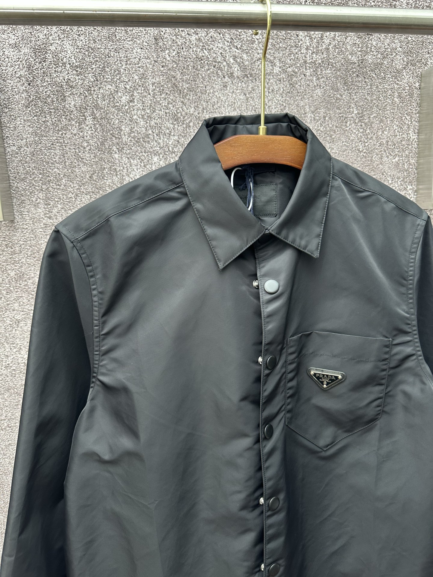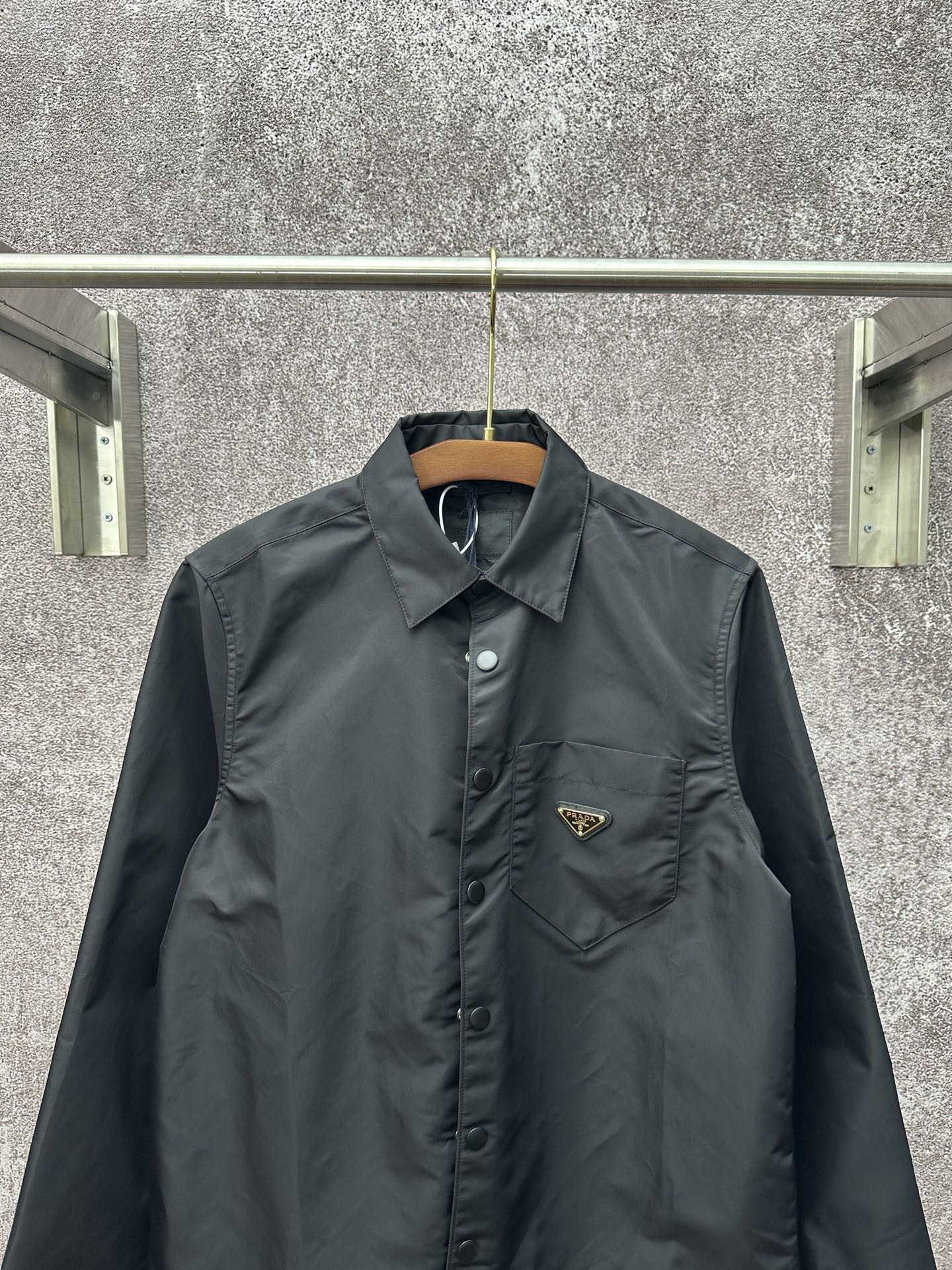 This Prada shirt jacket is a must-have for those who appreciate luxury and style. With its timeless design and premium materials, it's sure to become a staple in your wardrobe.