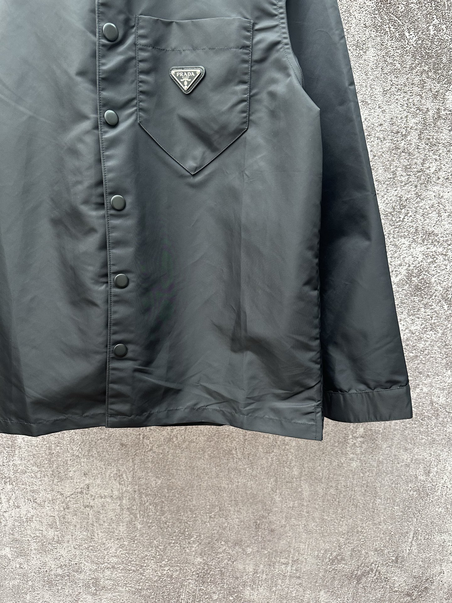 Tags: Black Prada Jacket, Designer Shirt Jacket, Prada Classic Triangle Logo, Prada Nylon Shirt Jacket
