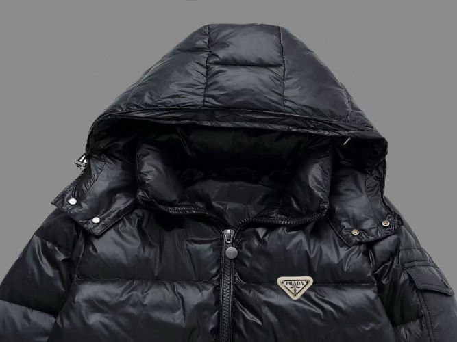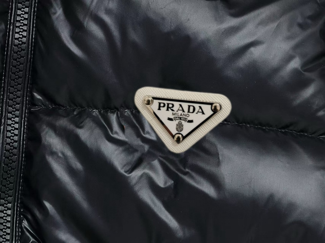 In conclusion, this Prada down jacket gives a blend of high-end fashion and functional design, perfect for staying warm and stylish during the colder months.