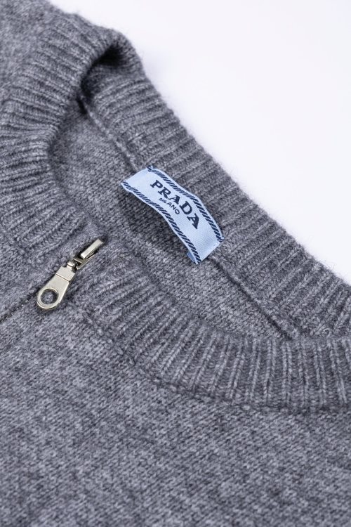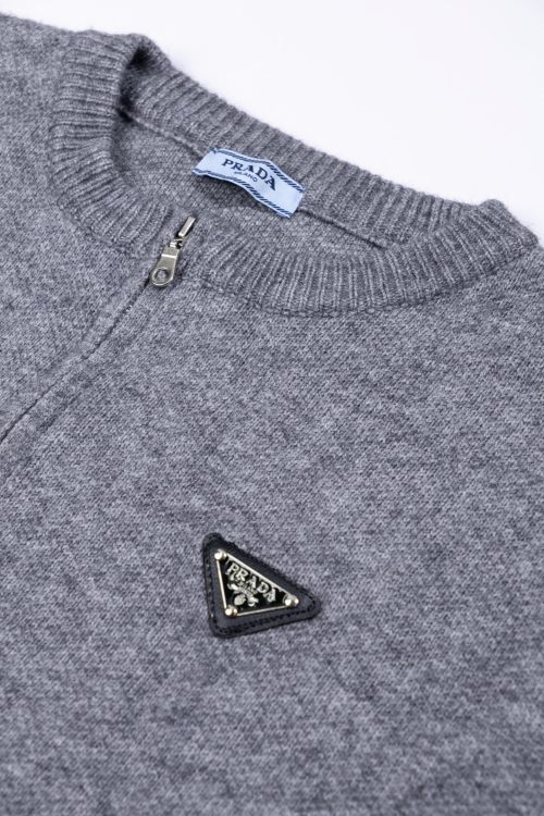 Prada Jacquard Knit Sweater Jacket - Premium Quality, Gray, Warm & Cozy