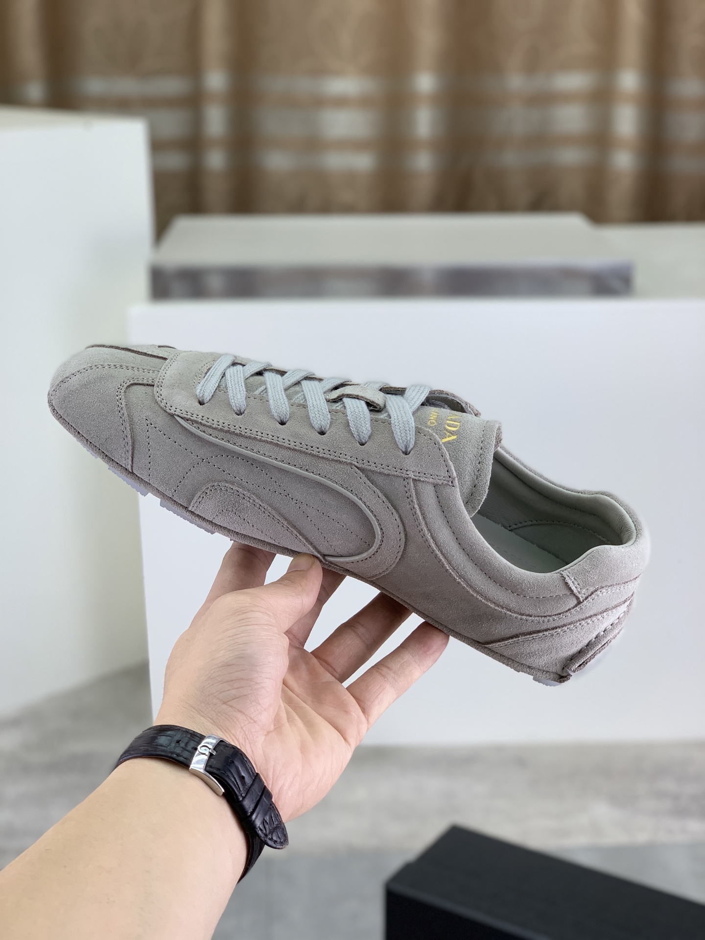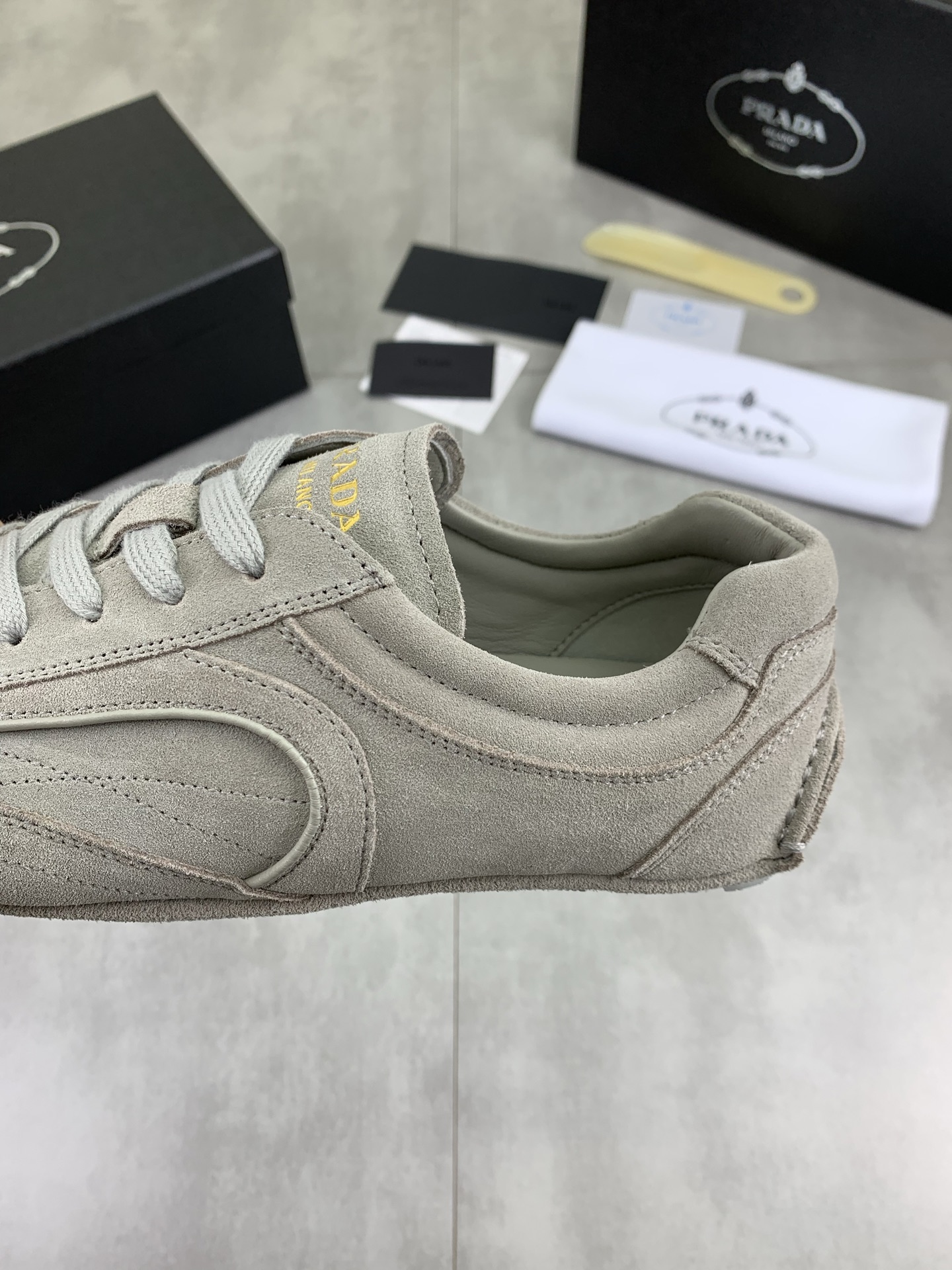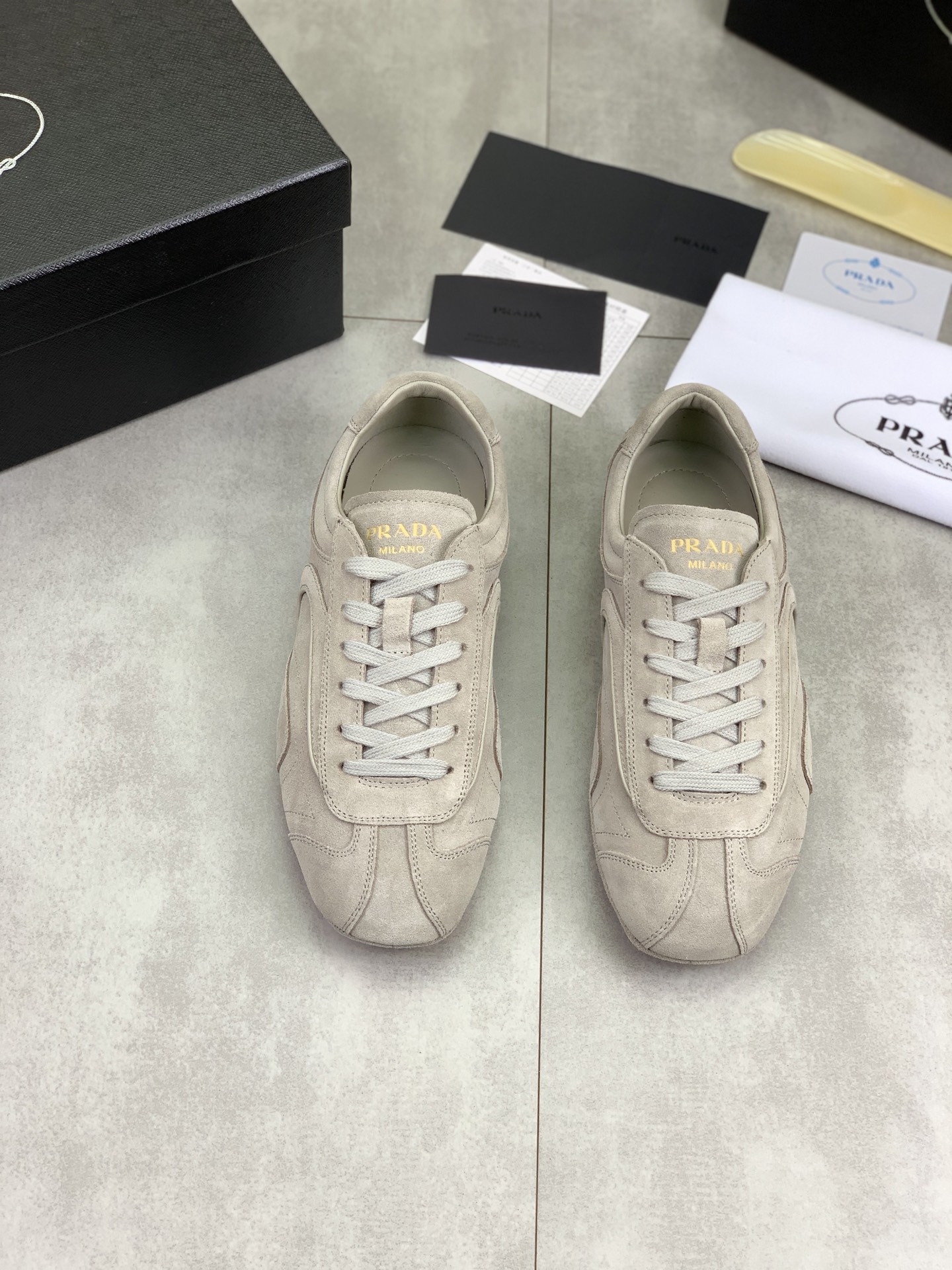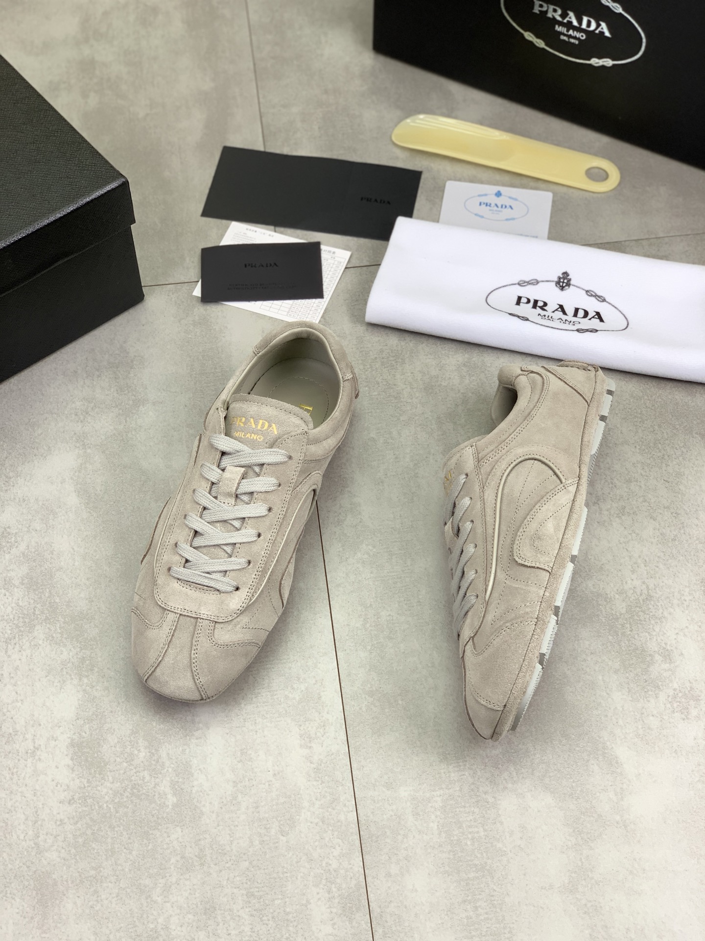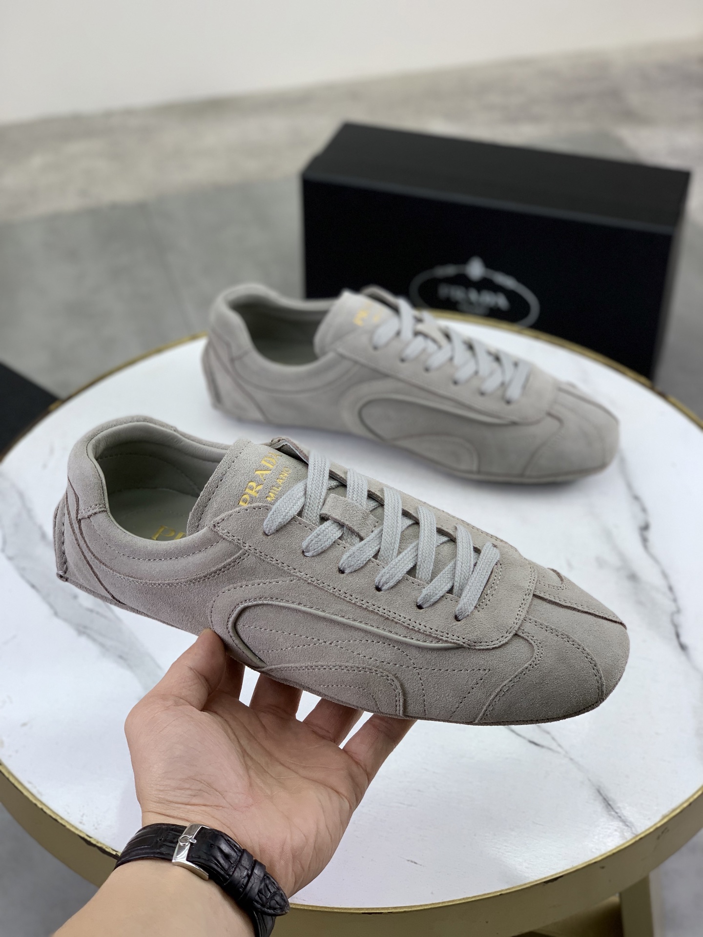 Tags: Breathable Leather Sneakers, Comfortable Men's Footwear, Designer Men's Shoes, Luxury Sneakers For Men, Prada Men's Casual Sneakers, Suede Leather Sneakers