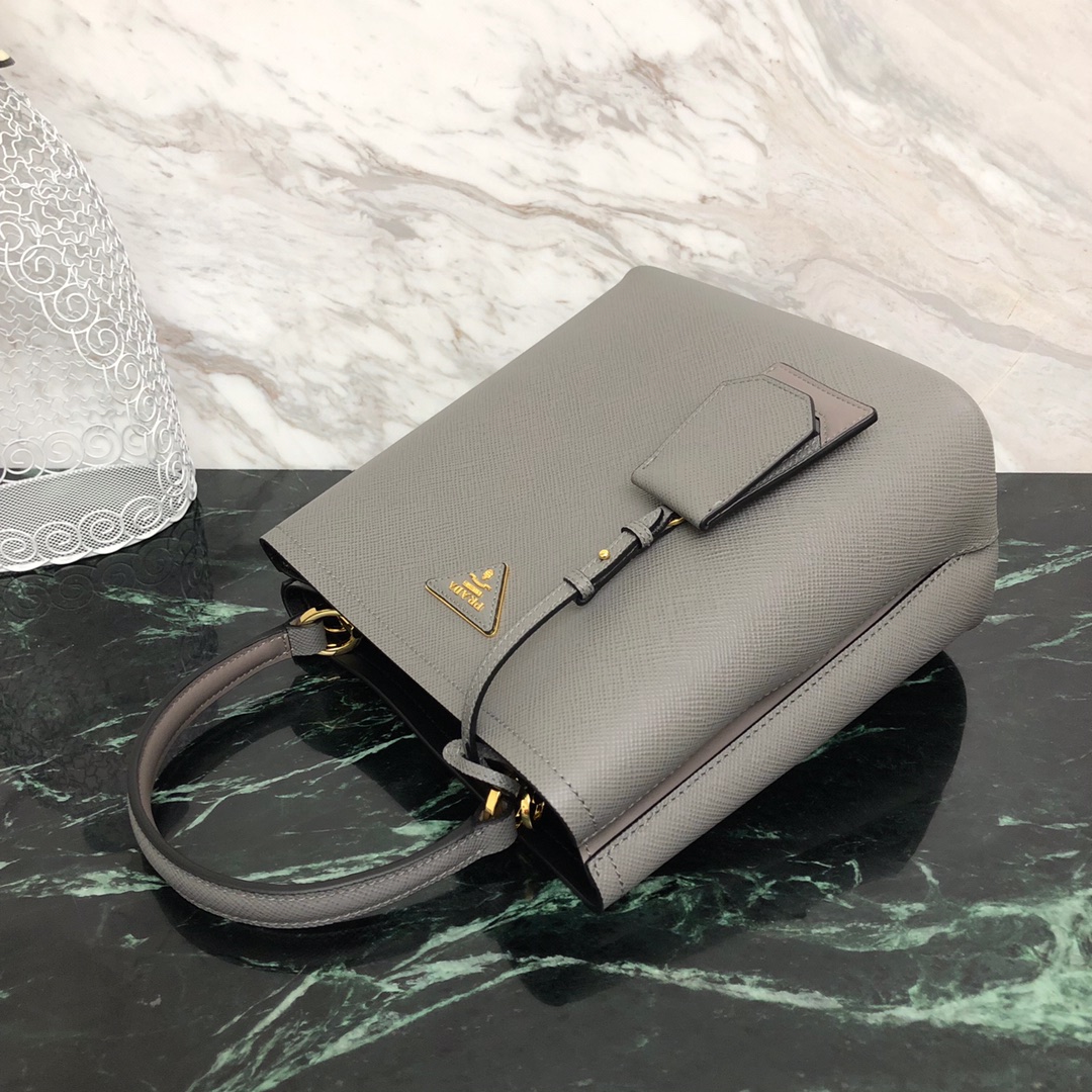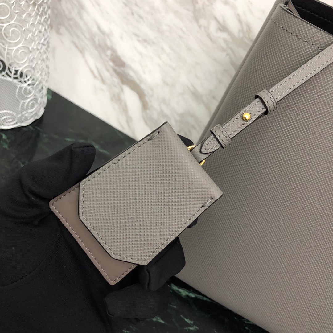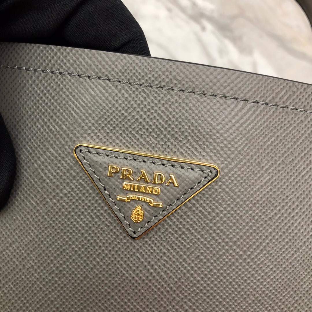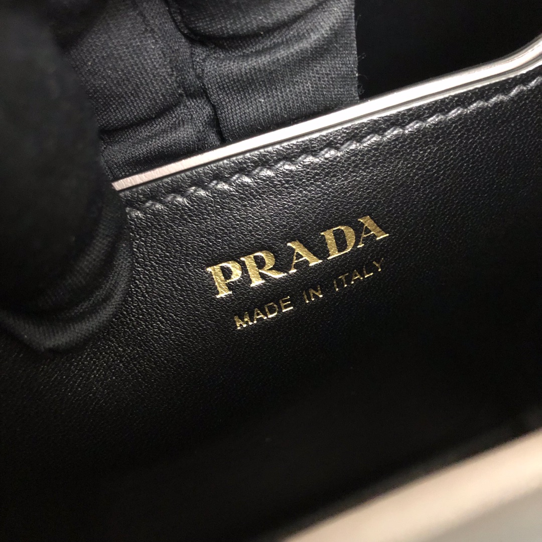 P's latest double handbag, bucket-shaped shopping bag, central pocket with covered magnetic buckle, very thoughtful design, fashionable and safe and convenient, contrasting color soft sheepskin lining, using the original Italian fragrance [strong] rough cross pattern, original