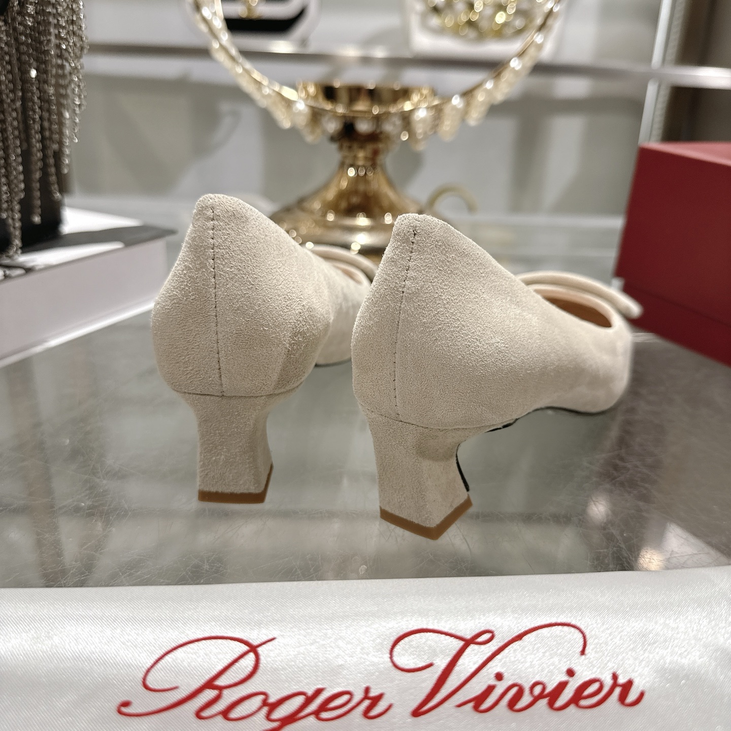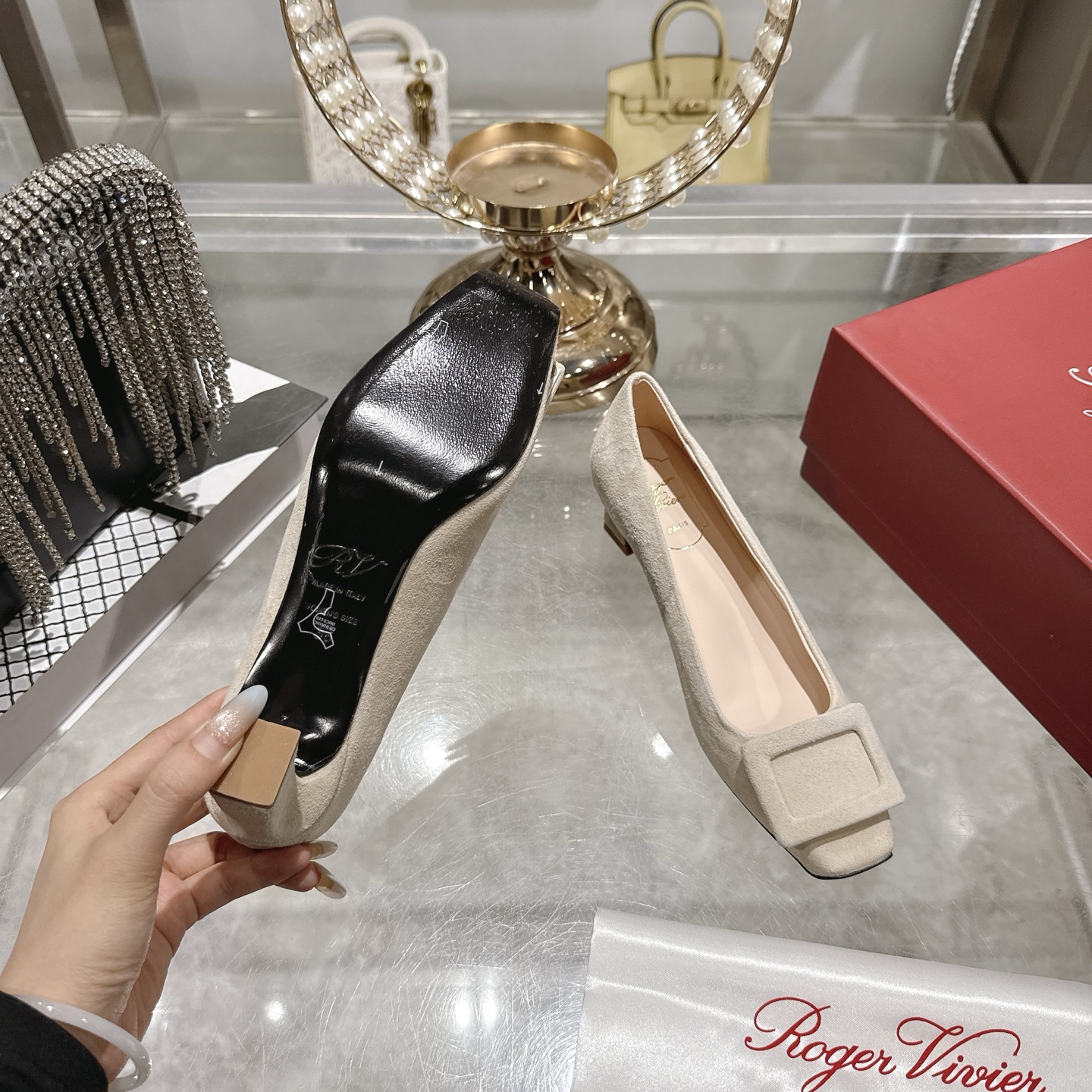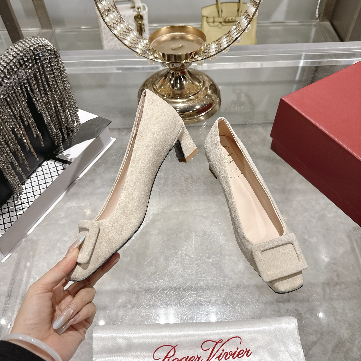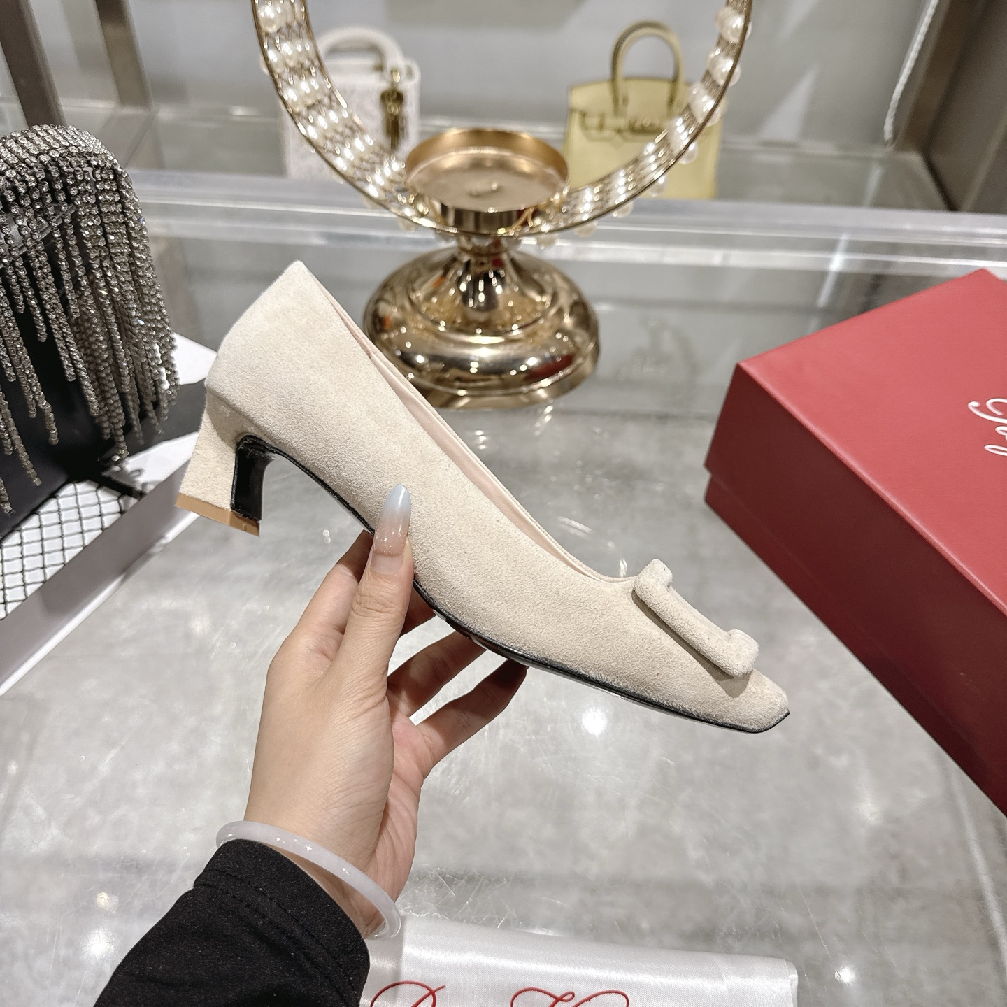 Roger Vivier Women's Belle Vivier Suede Pumps Classic Square Buckle Shoes