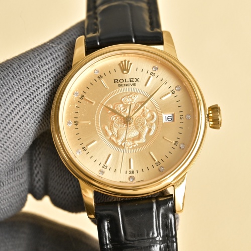 Tags: Designer Men's Watch, Gold Tone Watch, Leather Band Watch, Luxury Men's Watch, Rolex Men's Watch, Sapphire Glass Watch