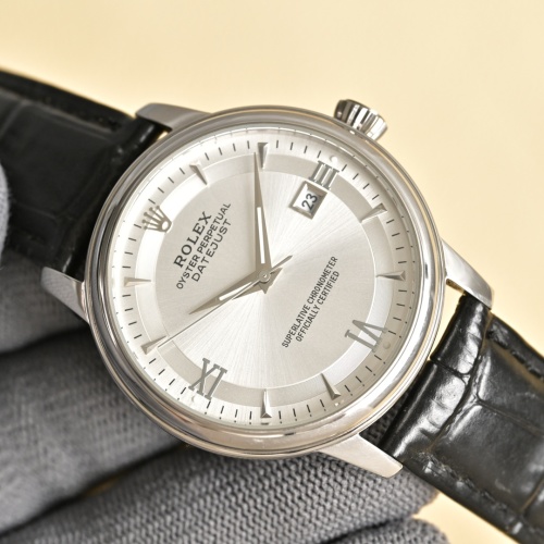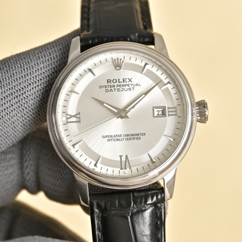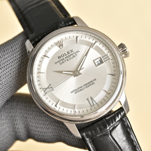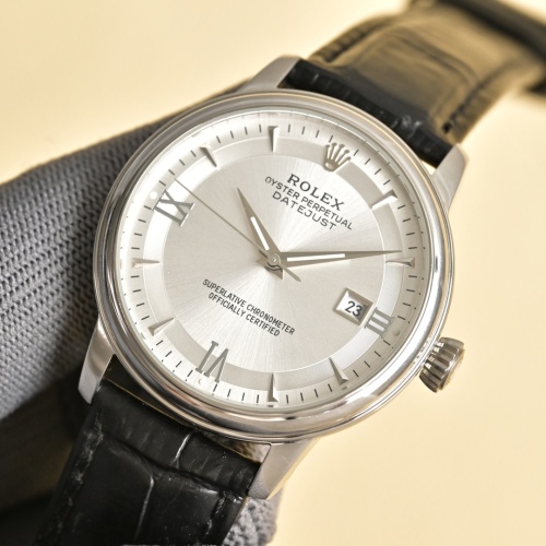 Rolex Oyster Perpetual Datejust Men's Watch, Leather Band, Silver Dial