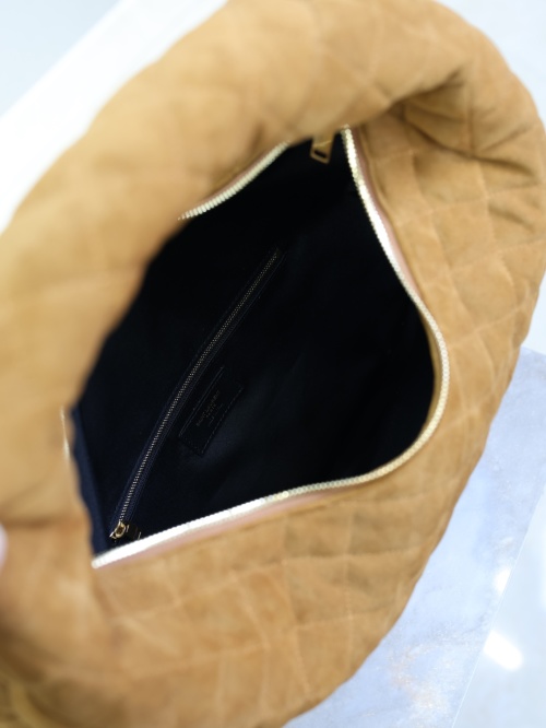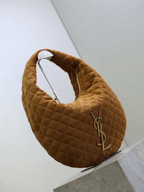 Tags: Brown Hobo Bag, Iconic Logo Bag, Luxury Suede Handbag, Quilted Designer Handbag, Saint Laurent Hobo Bag, Suede Shoulder Bag