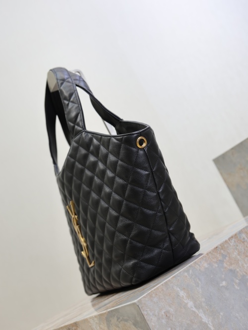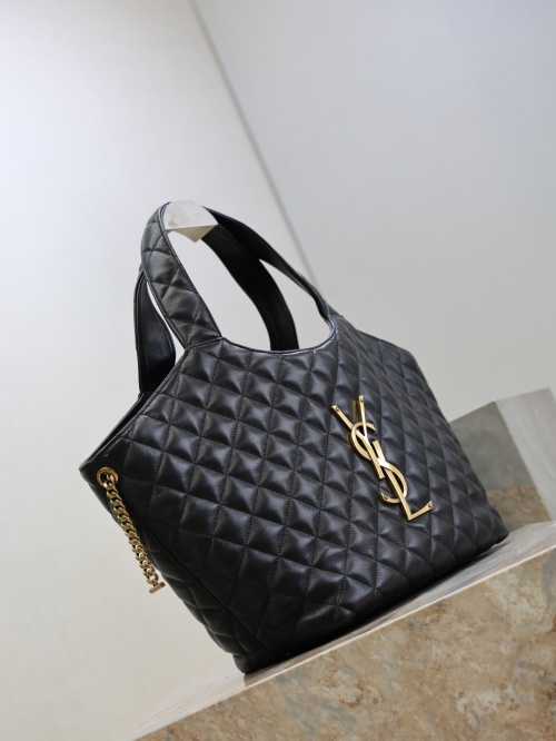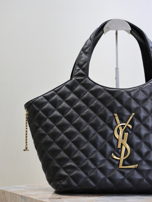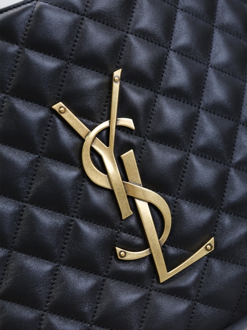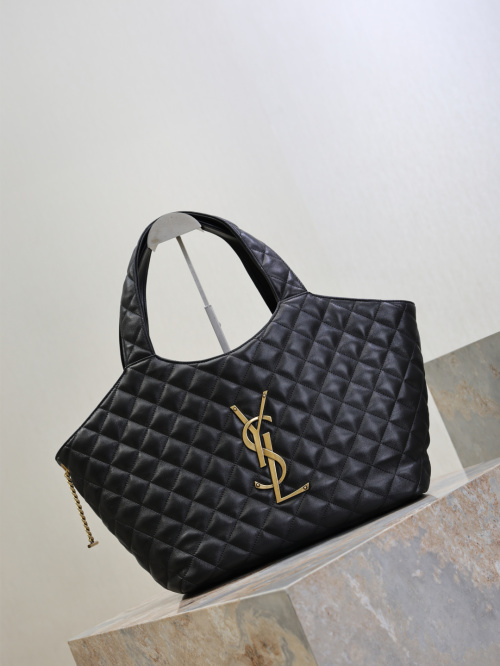 Tags: Black Leather Handbag, Designer Shopping Bag, Everyday Tote Bag, Quilted Lambskin Tote, Saint Laurent Icare Bag