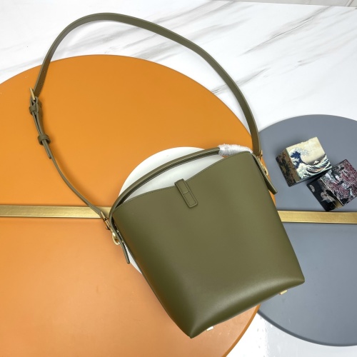 Tags: Calfskin Leather Bag, Designer Bucket Bag, Olive Green Bag, Saint Laurent Bucket Bag, Ysl Le 37