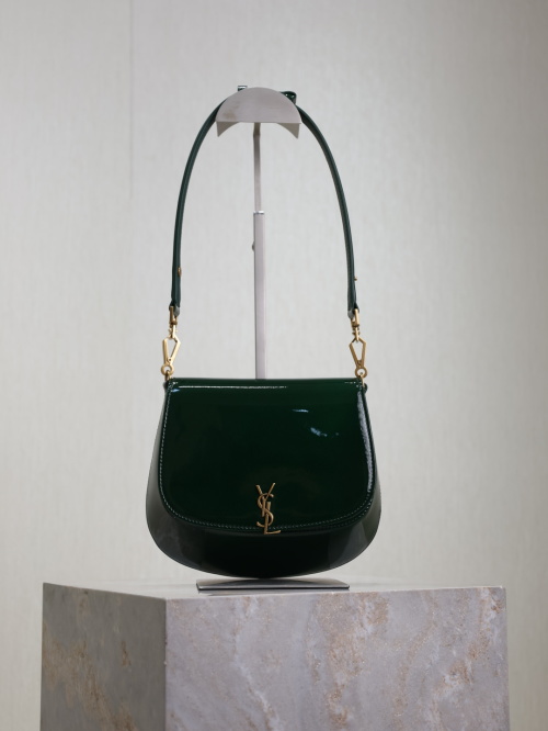 Tags: Designer Shoulder Bag, Gold Hardware Handbag, Green Patent Leather Bag, Luxury saddle bag, Saint Laurent saddle bag, YSL Voltaire Bag