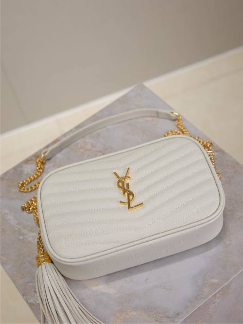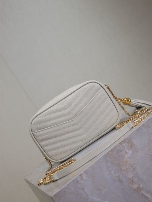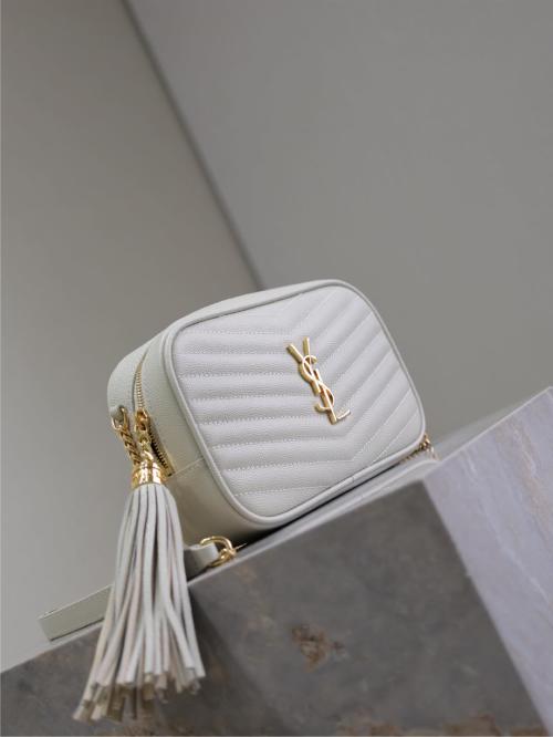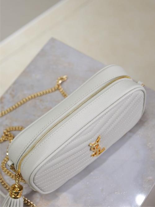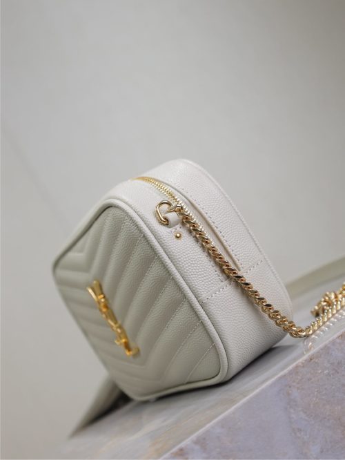 Tags: Designer Mini Bag, Fashion Camera Bag, Gold Hardware Bag, Saint Laurent Camera Bag, White Leather Crossbody, Ysl Lou Bag