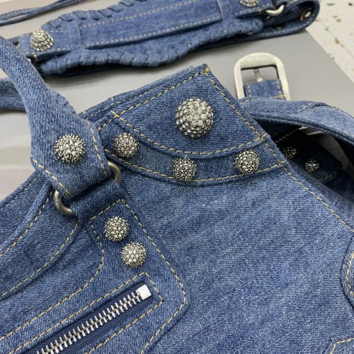 Spot【Large Denim Diamond Buckle】💙Balenciagα Paris's latest Neo cagole motorcycle bag is equipped with a small love mirror this time, and there is a sweetheart under the cool appearance♡ Carrying it on can enhance the whole aura, it's easy