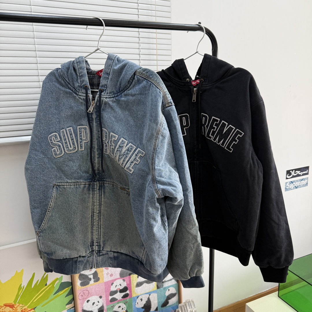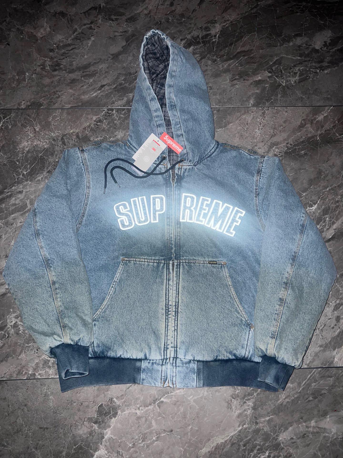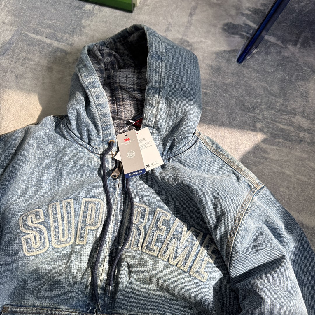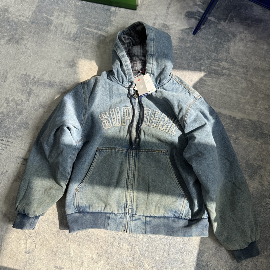 Tags: Denim Workwear Jacket, Hooded Work Jacket, Quilted Flannel Jacket, Reflective Arc Jacket, Supreme Denim Jacket, Supreme FW25