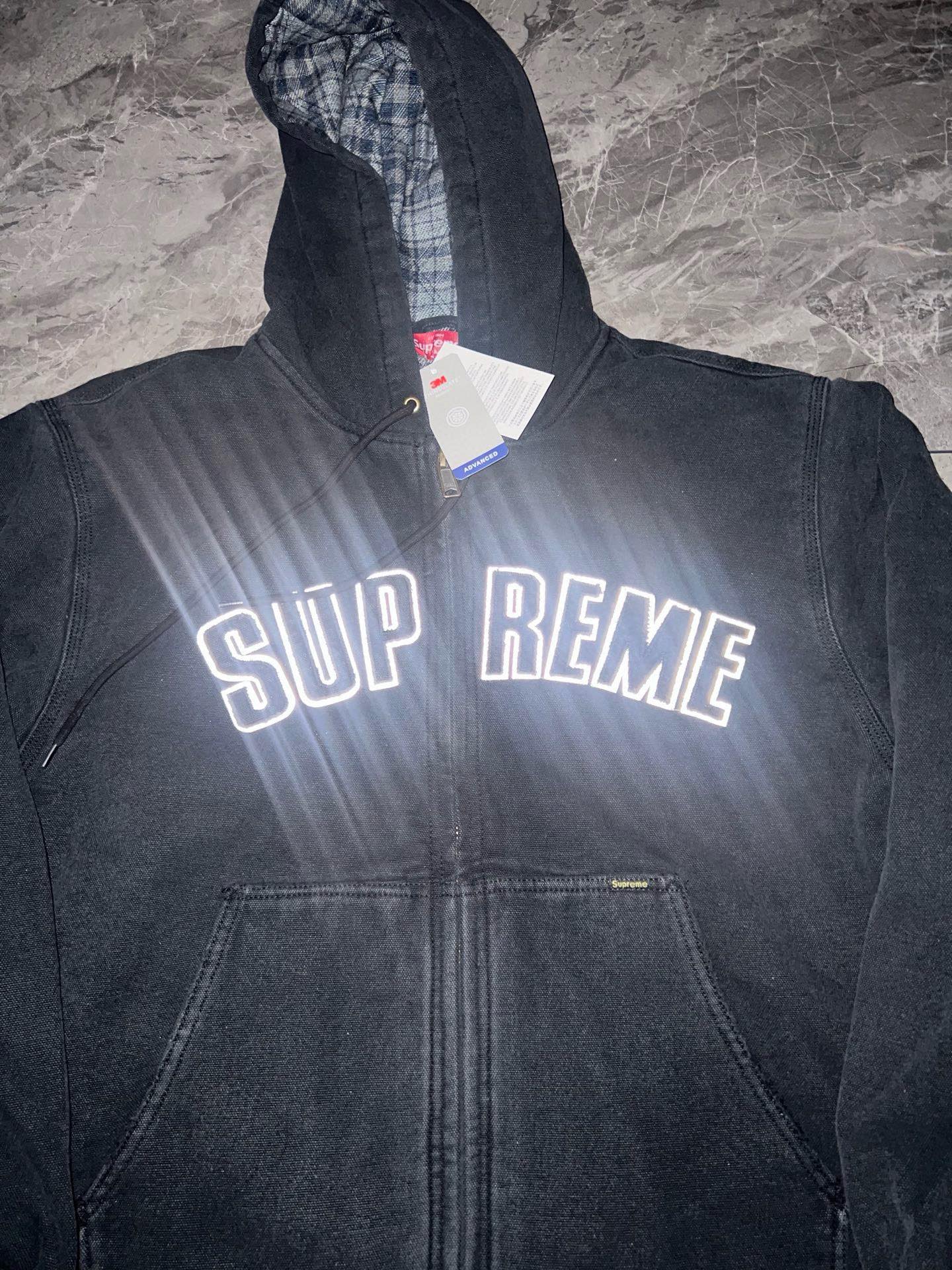 With its stylish design and practical features, this jacket is perfect for any occasion. Stay warm and fashionable with the Supreme FW25 Reflective Arc Hooded Work Jacket.