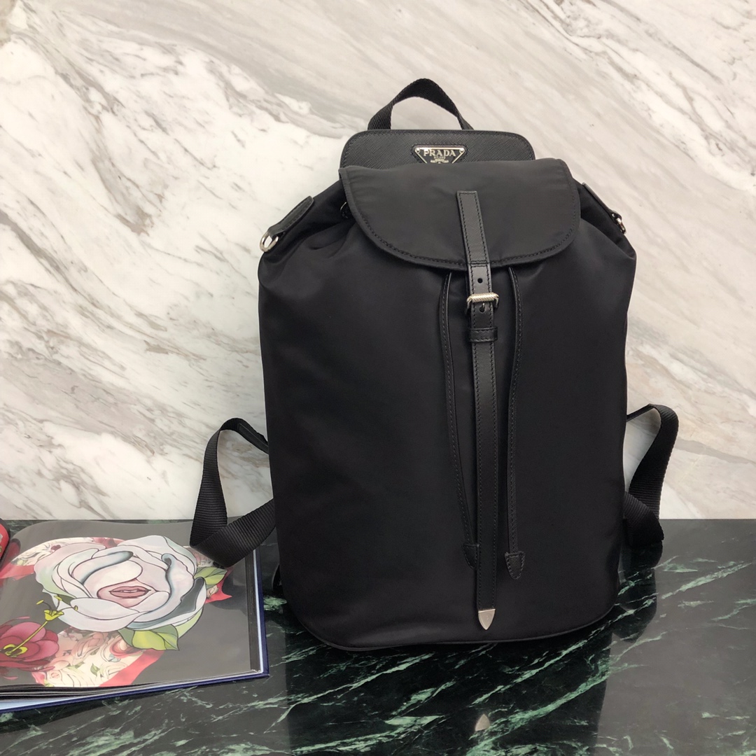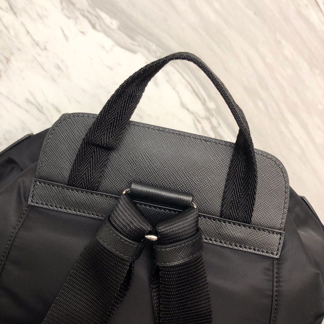 P's latest nylon backpack arrives, classic bag shape ➕ nylon material, imported tarpaulin, saffiano leather trim, buckle and magnetic buckle Flap flap, inner nylon drawstring, two inner pockets, one of which has a zipper, high security and practicality! The design is simple and stylish, light and large capacity, it is a must-have [strong]