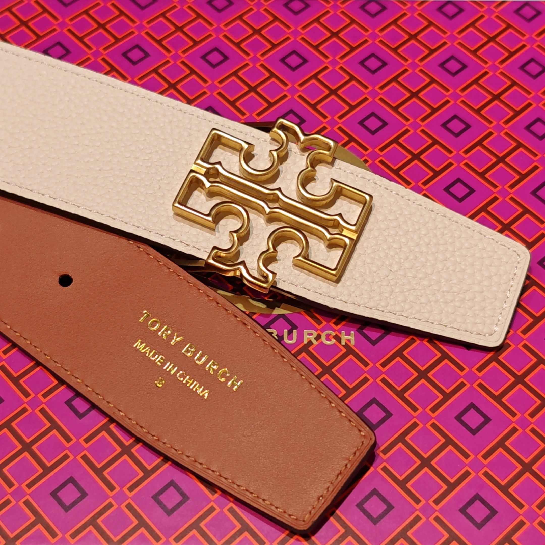 Elevate your style with this Tory Burch reversible leather belt. Crafted with premium leather and featuring signature gold hardware.