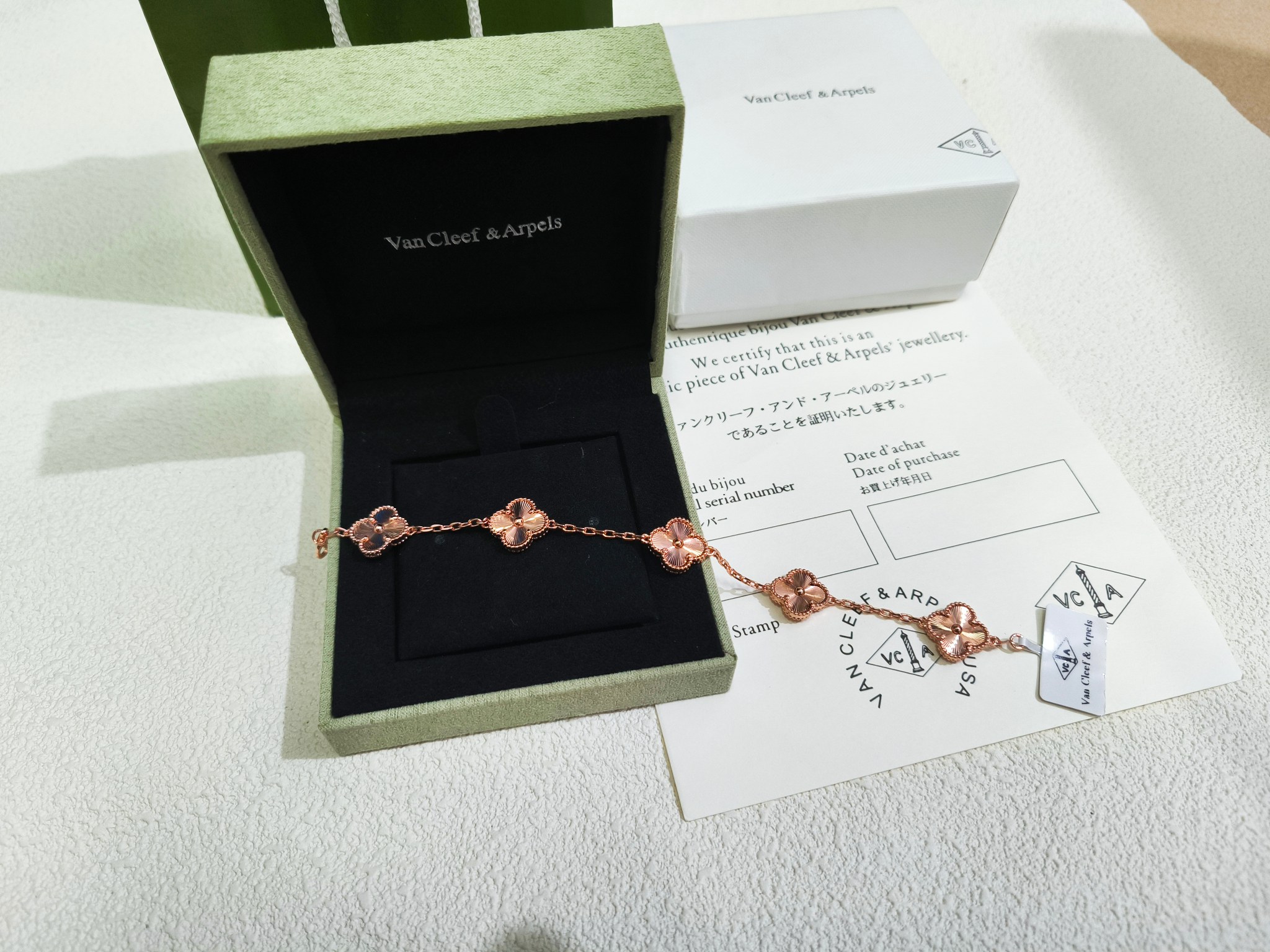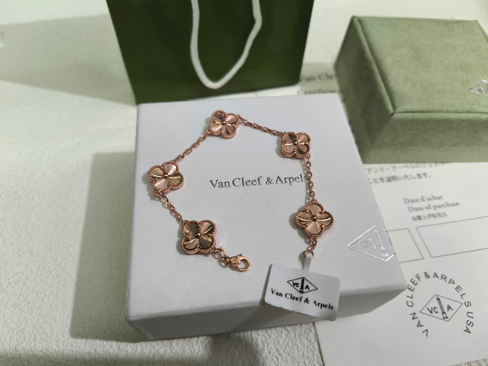 Van Cleef & Arpels Rose Gold Clover Bracelet, Laser Engraved, Elegant Design